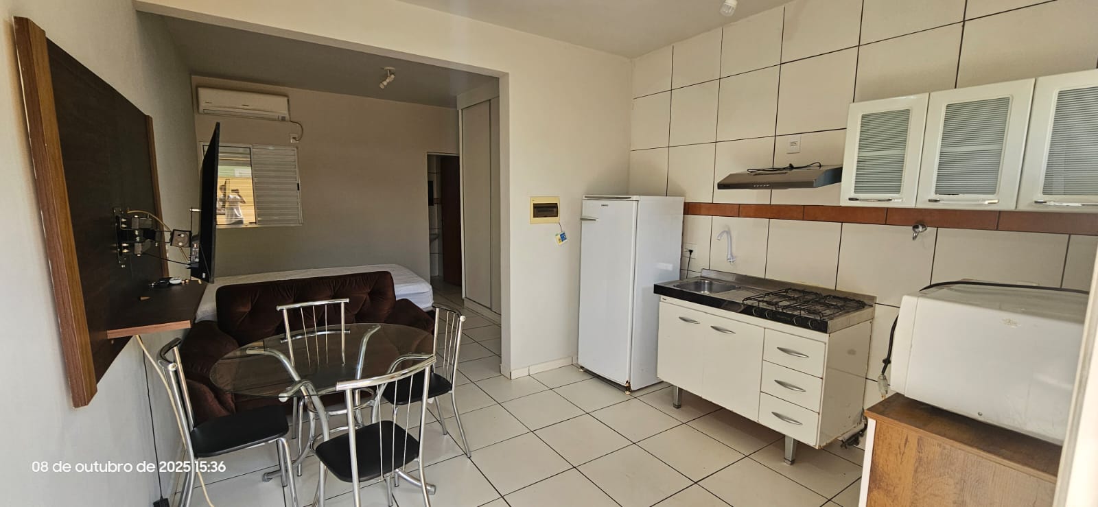 MOBILIADO COM: CAMA BOX DE CASAL, TV, SOFA, MESA COM 4 CADEIRAS, GELADEIRA, FOGÃO, FRUTEIRA, MICROONDAS E SUGGAR.