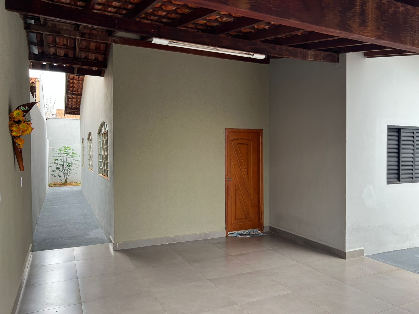 Casa com 02 dormitórios com ventiladores de teto, sala, cozinha, wc social, área de serviço, varanda, garagem, pintura látex, quintal calçado, teto laje, piso frio, portas em ferro e madeira, janelas em ferro, murada.