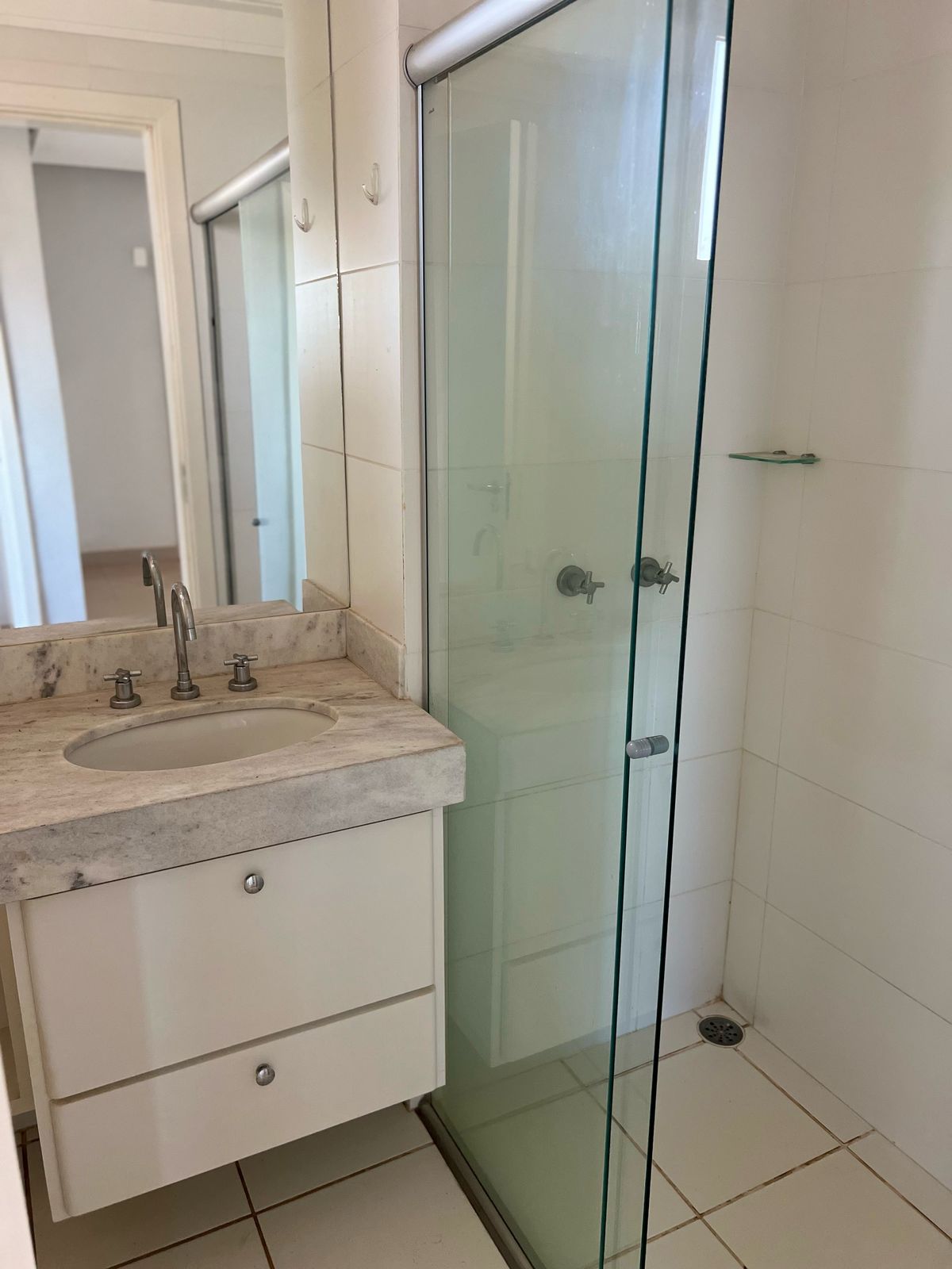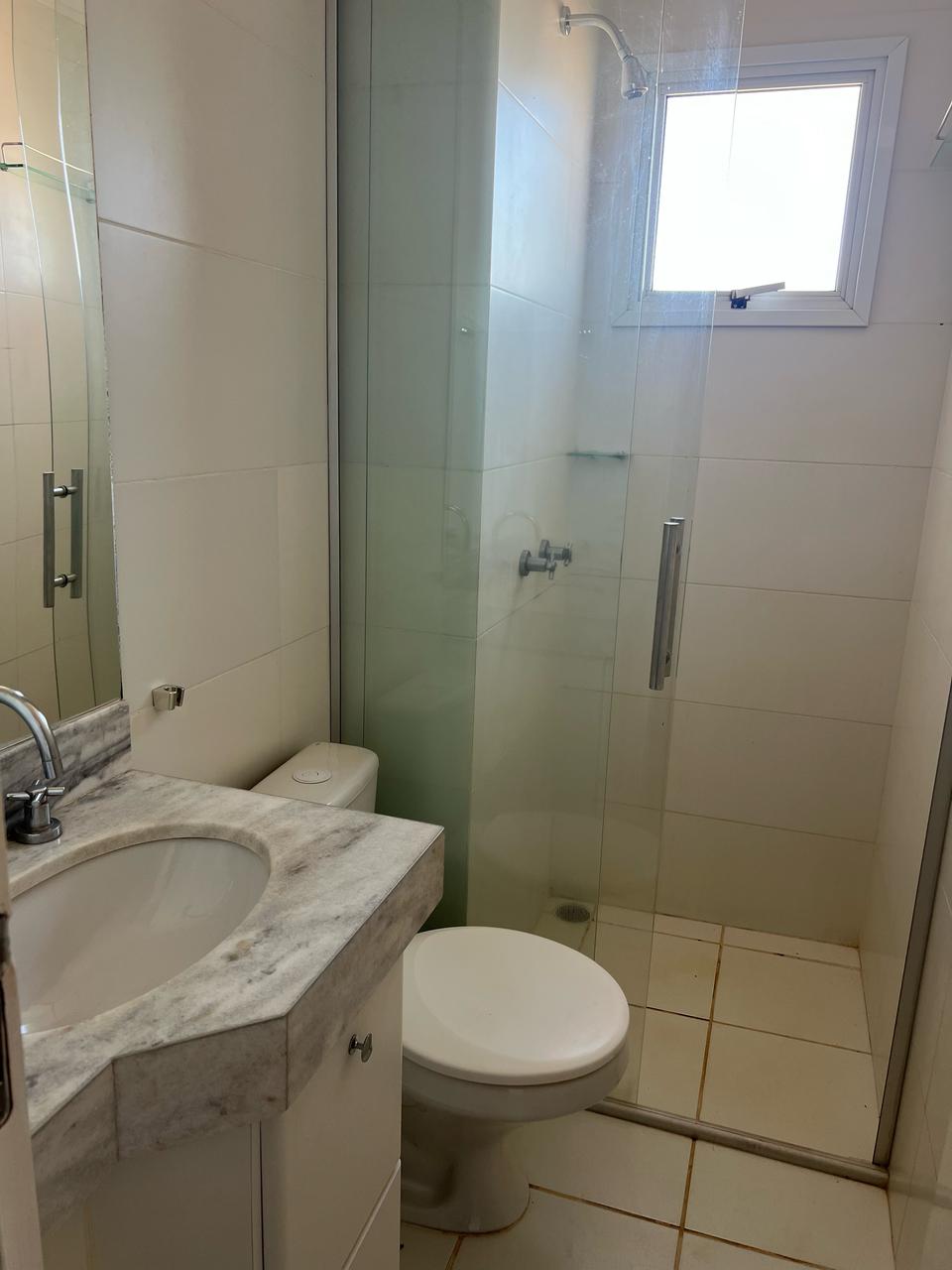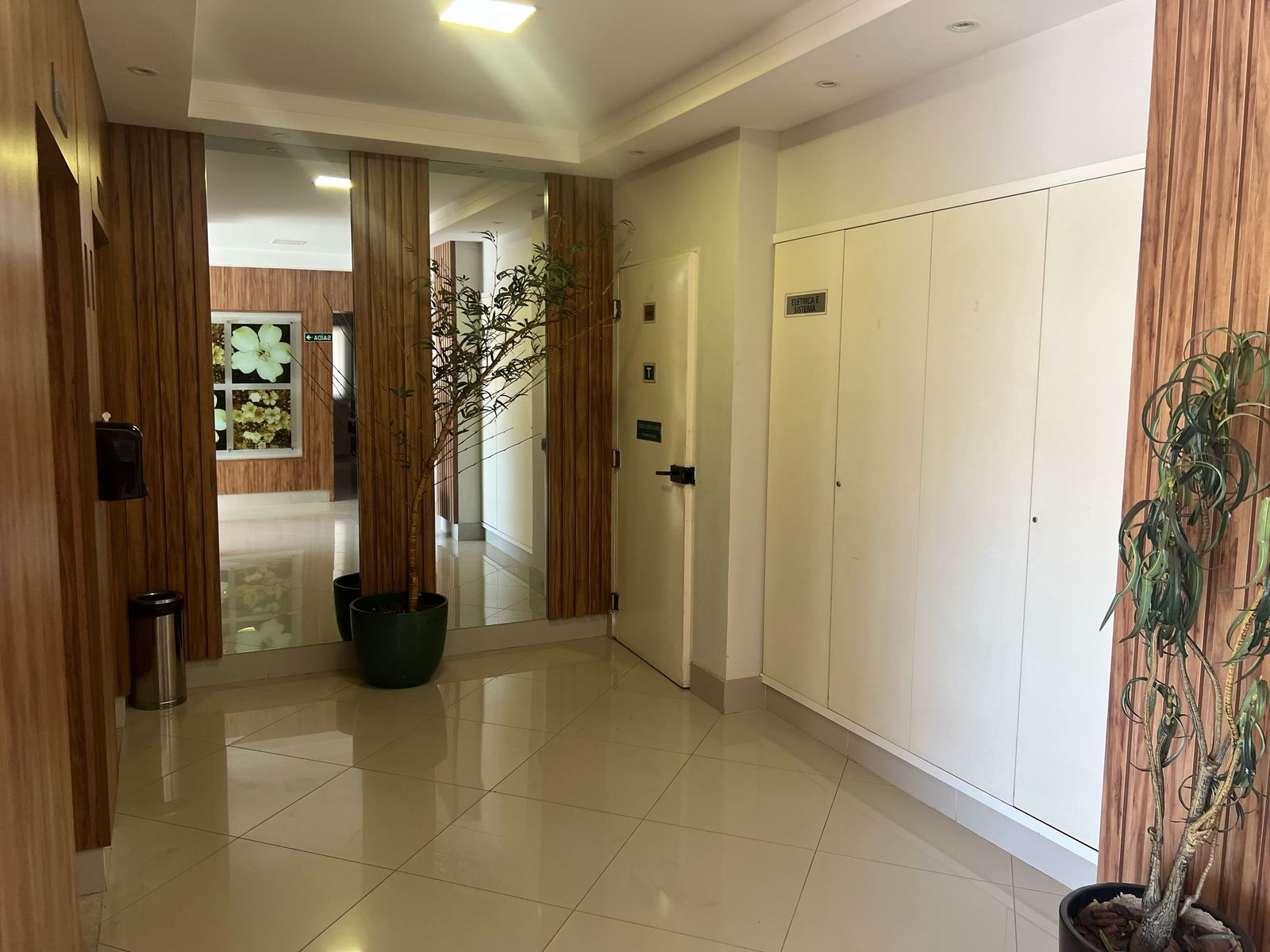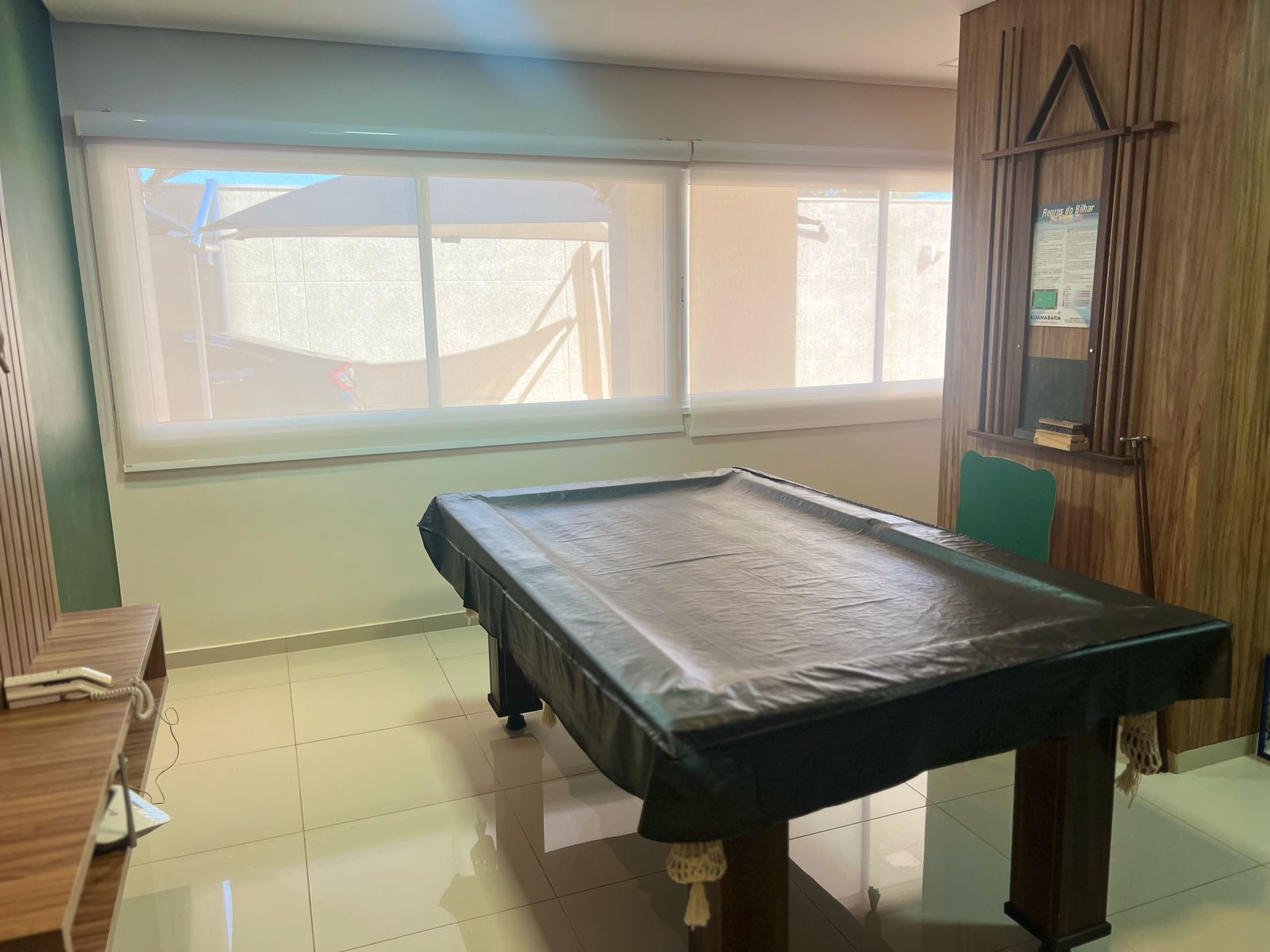 Apartamento com 01 suíte com AE e AR, 01 dormitório com AE e ventilador, sala ampla, sacada com churrasqueira, cozinha planejada, wc social, lavanderia, garagem com 02 vagas, área de lazer com piscina, churrasqueira, choperia, academia, salão de jogos, elevadores, loja de conveniência, pintura látex, quintal calçado, teto laje, piso porcelanato, portas em ferro e madeira, janelas em alumínio, murada.