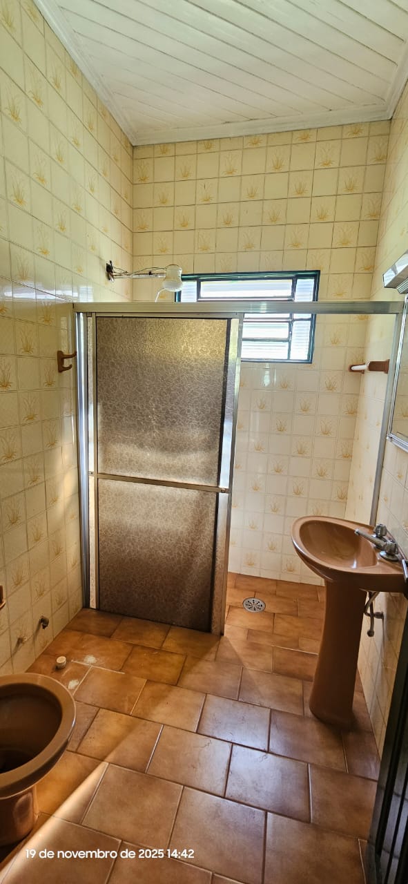 Casa com 01 suíte, 02 dormitórios, sala, copa, cozinha, wc social, área de serviço, alpendre, despejo, garagem, pintura látex, quintal calçado, madeira, piso ceramica e taco, portas em ferro e madeira, janelas em ferro com grades, murada.
