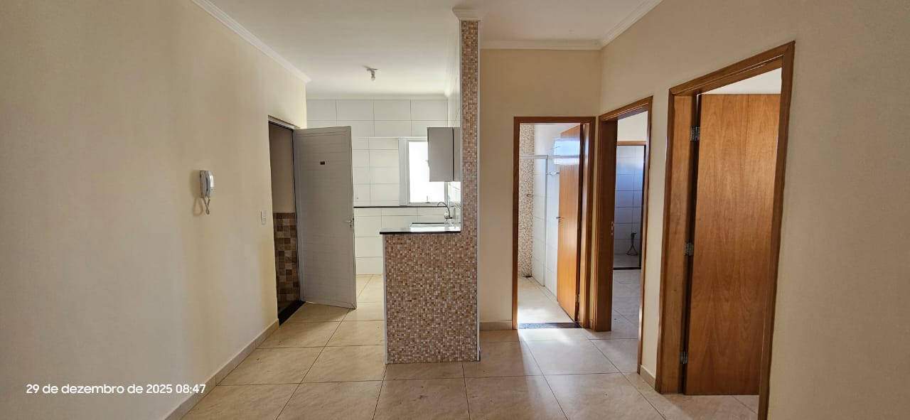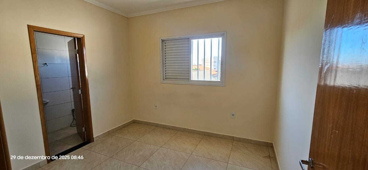 Apartamento com 01 suíte, 01 dormitório, sala, cozinha, wc social, área de serviço, entrada para 01 carro, pintura látex, quintal calçado, teto laje e gesso, piso frio, portas em alumínio e madeira, janelas em alumínio, murada.