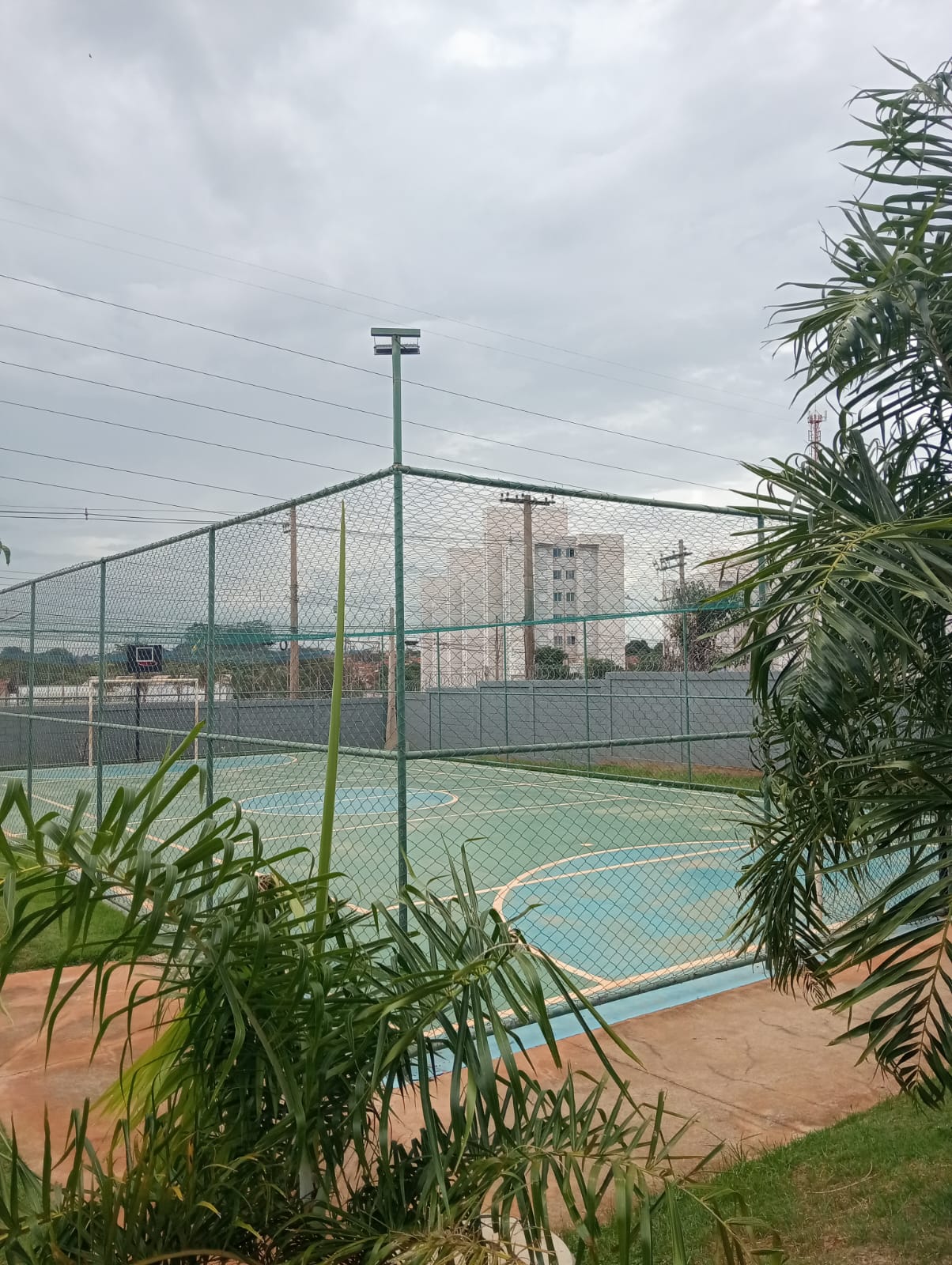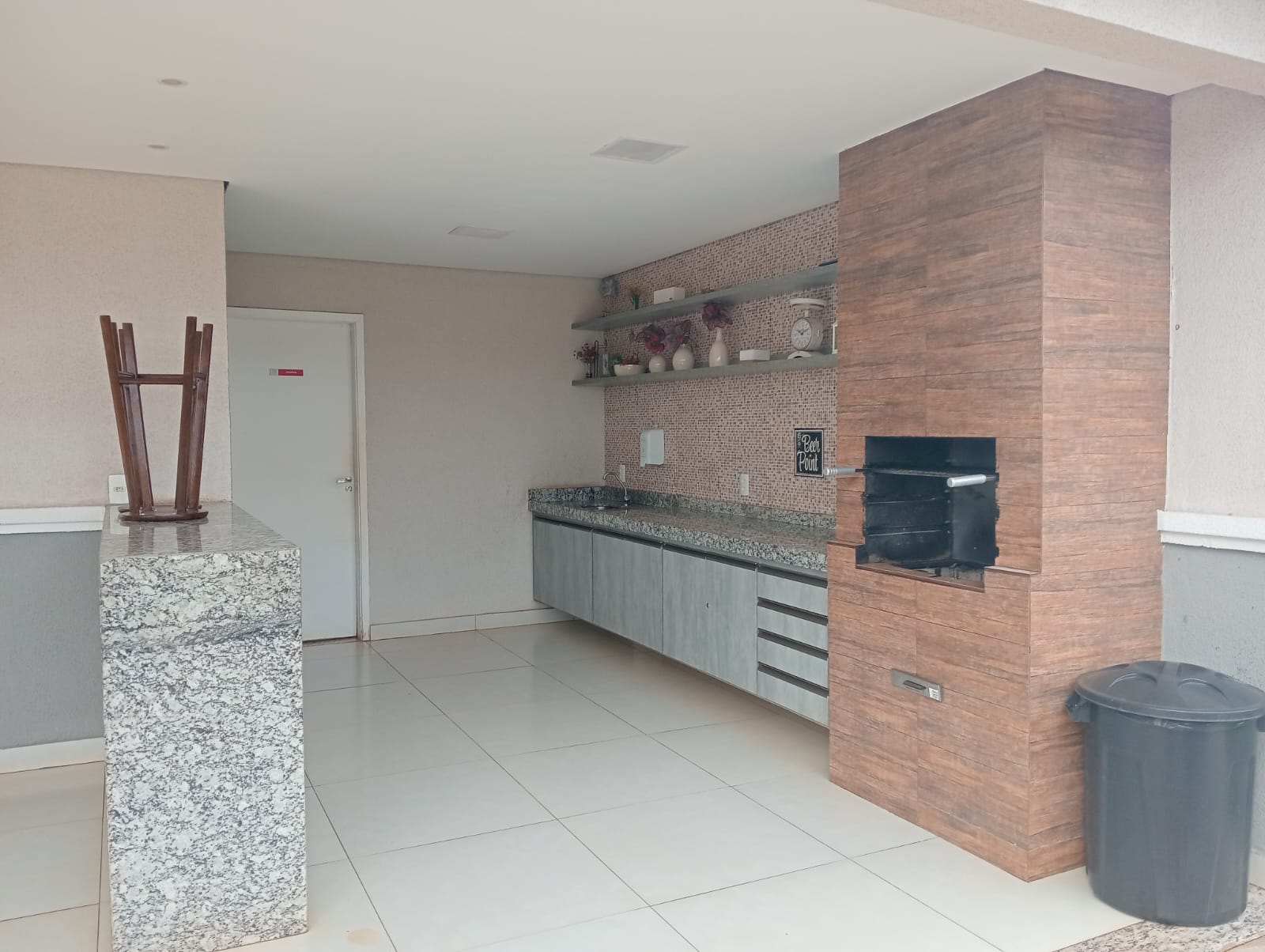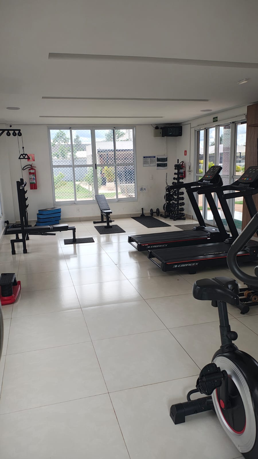 Apartamento com 02 dormitórios, sala, cozinha, wc social, lavanderia, sacada, área de lazer com playground, espaço fitness, espaço gourmet, churrasqueira, mini-campo, piscina, academia, horta, garagem para 01 carro, pintura látex, teto laje, piso frio e paviflex, portas em madeira, janelas em alumínio.
