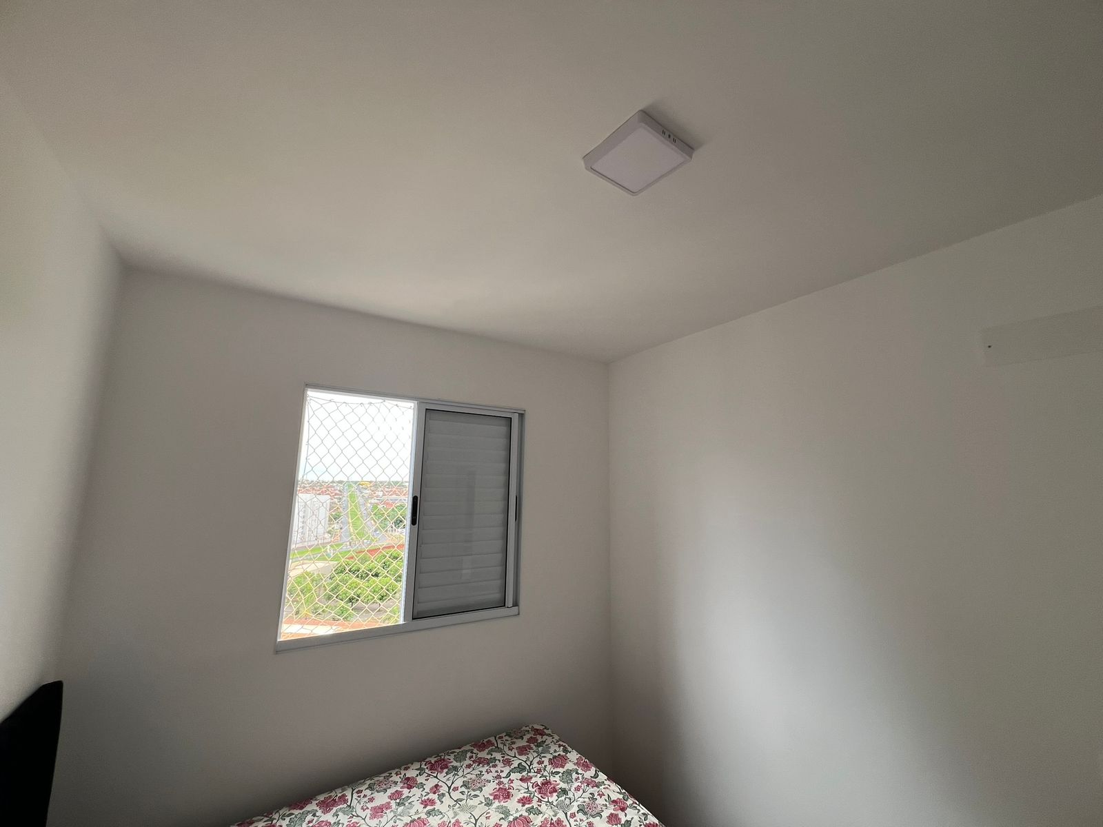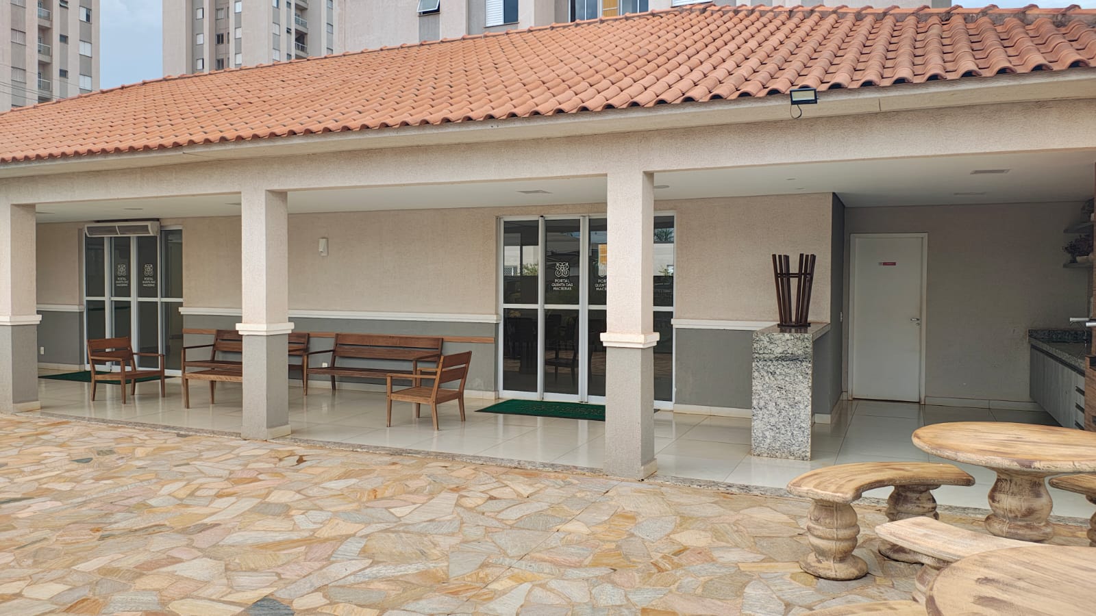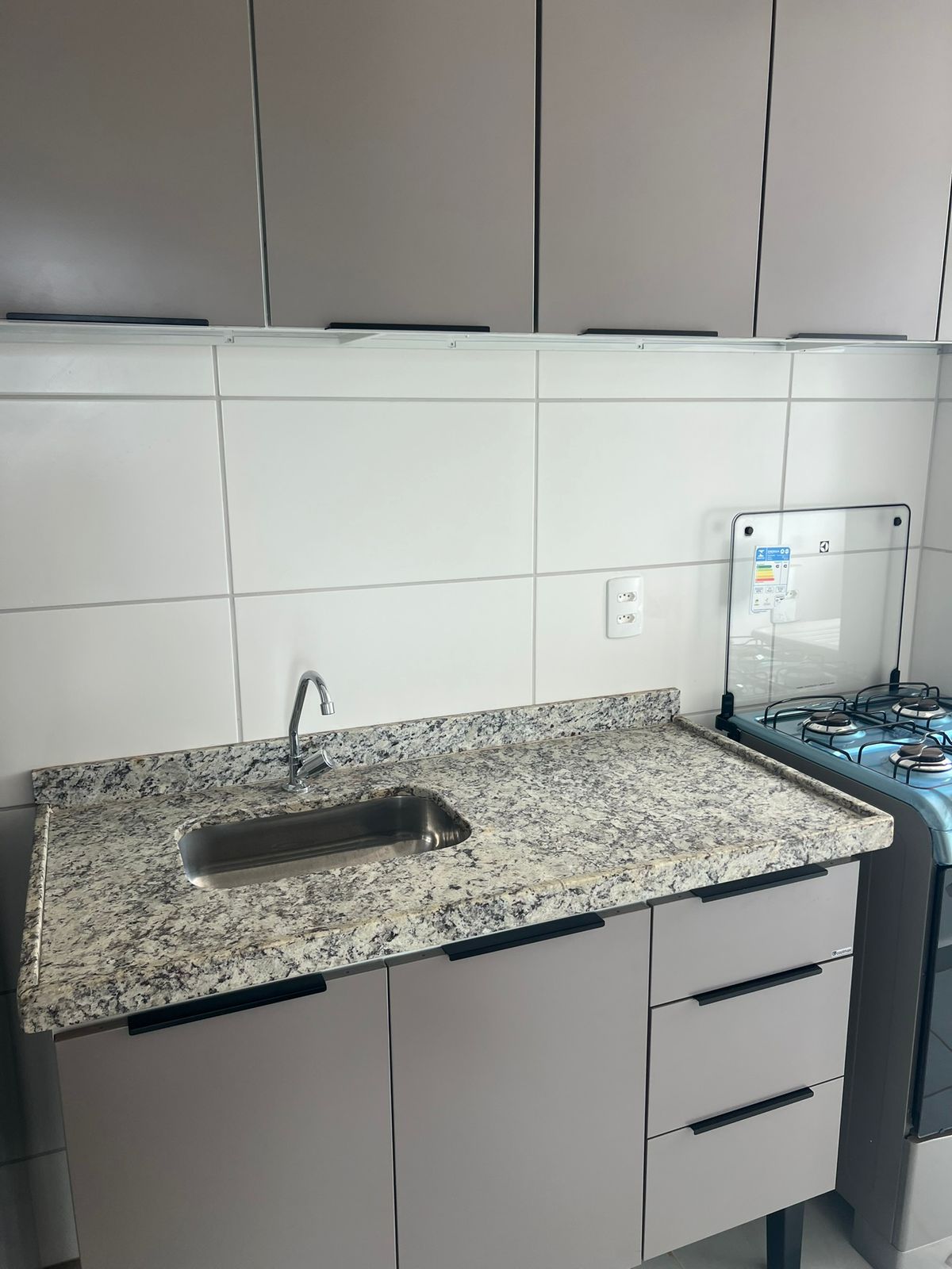 Apartamento com 02 dormitórios, sala, cozinha, wc social, lavanderia, sacada, área de lazer com playground, espaço fitness, espaço gourmet, churrasqueira, mini-campo, piscina, academia, horta, garagem para 01 carro, pintura látex, teto laje, piso frio e paviflex, portas em madeira, janelas em alumínio.