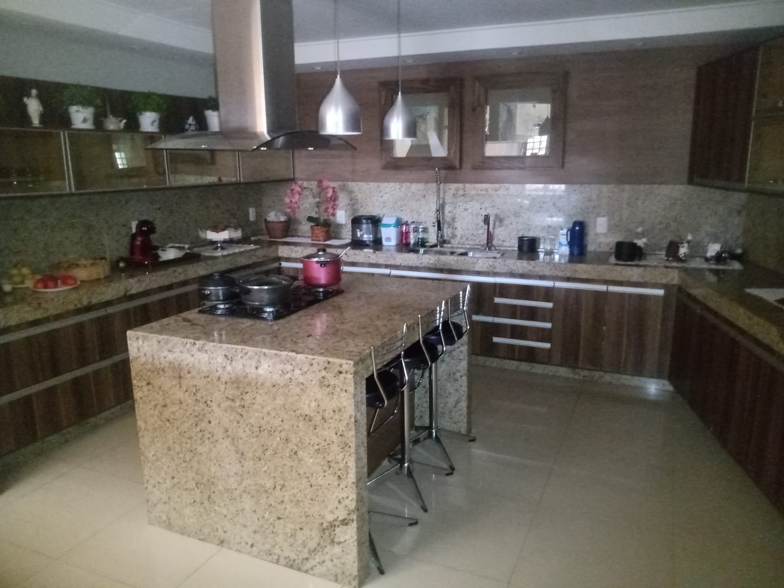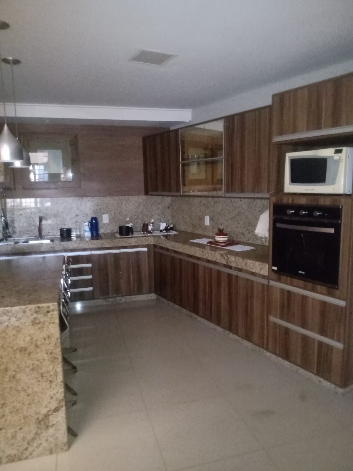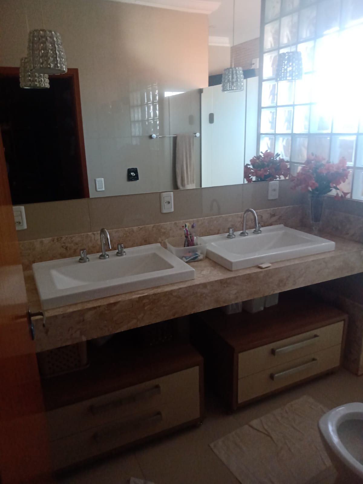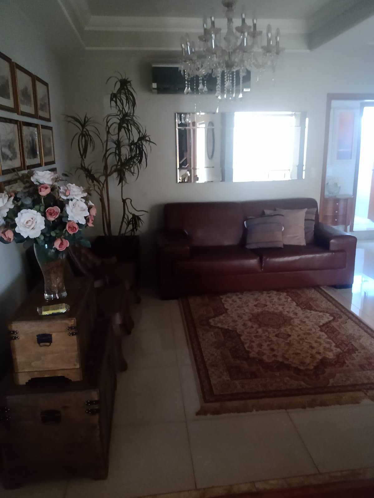 Sobrado parte superior com: 04 suítes sendo 01 com Closet e banheira de hidromassagem, 02 salas de estar conjugadas, sala de tv com sacada, escritório, jardim de inverno e wc social. Parte inferior com: hall de entrada, lavabo, sala de estar, elevador, acesso a escada, sala de jantar, cozinha, área externa com pergolado e lavabo, área de serviço e pequeno quintal, 02 garagens separadas com capacidade para 01 automóvel cada, pintura látex, quintal calçado, teto laje, murada.