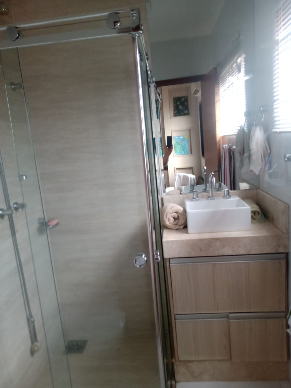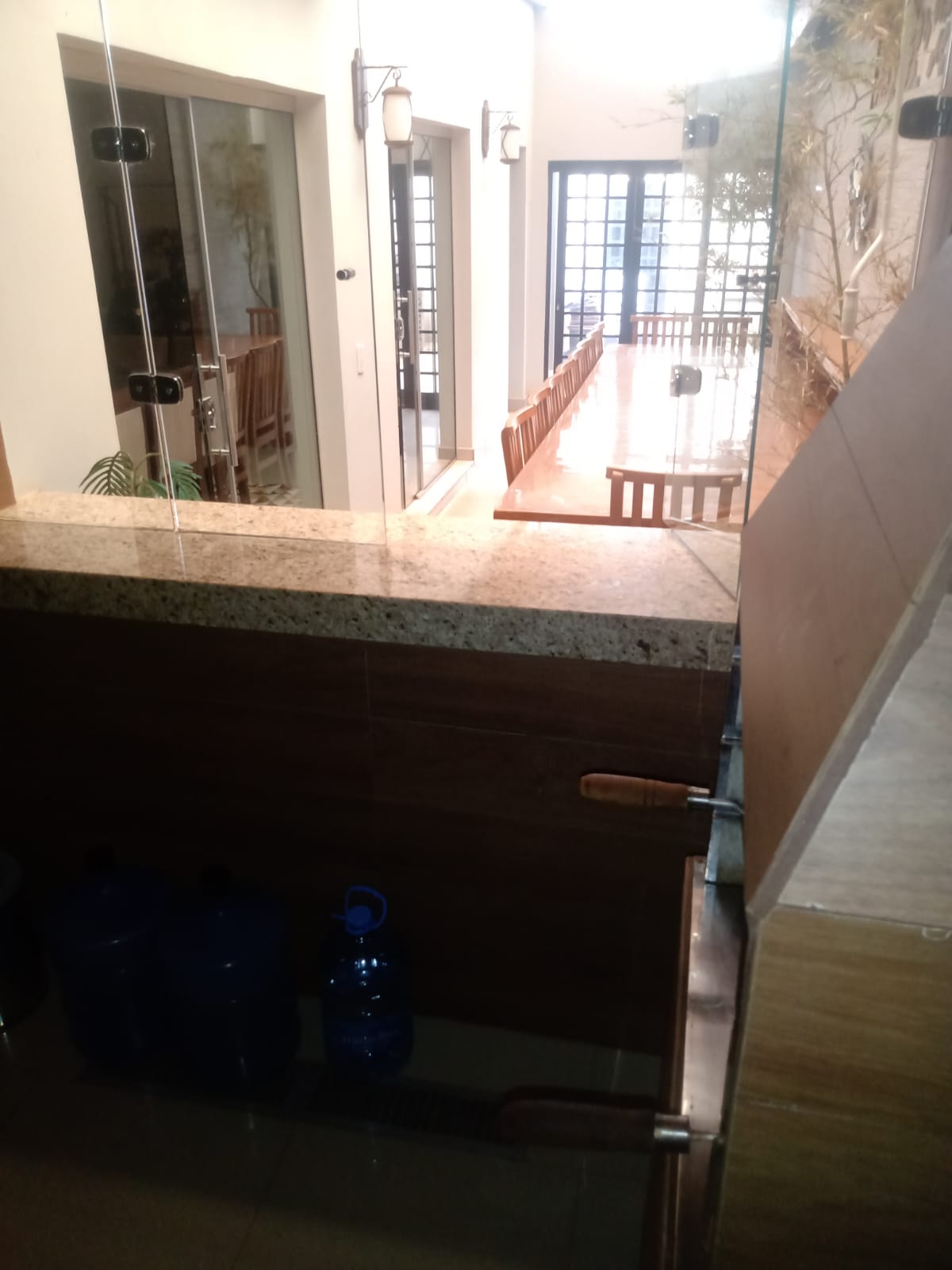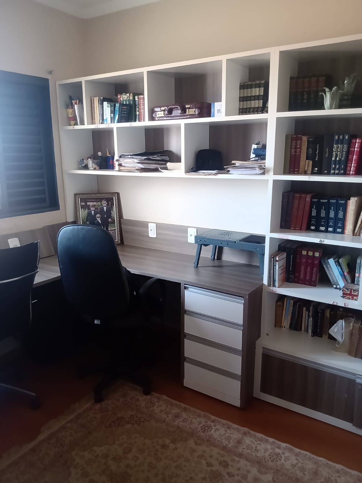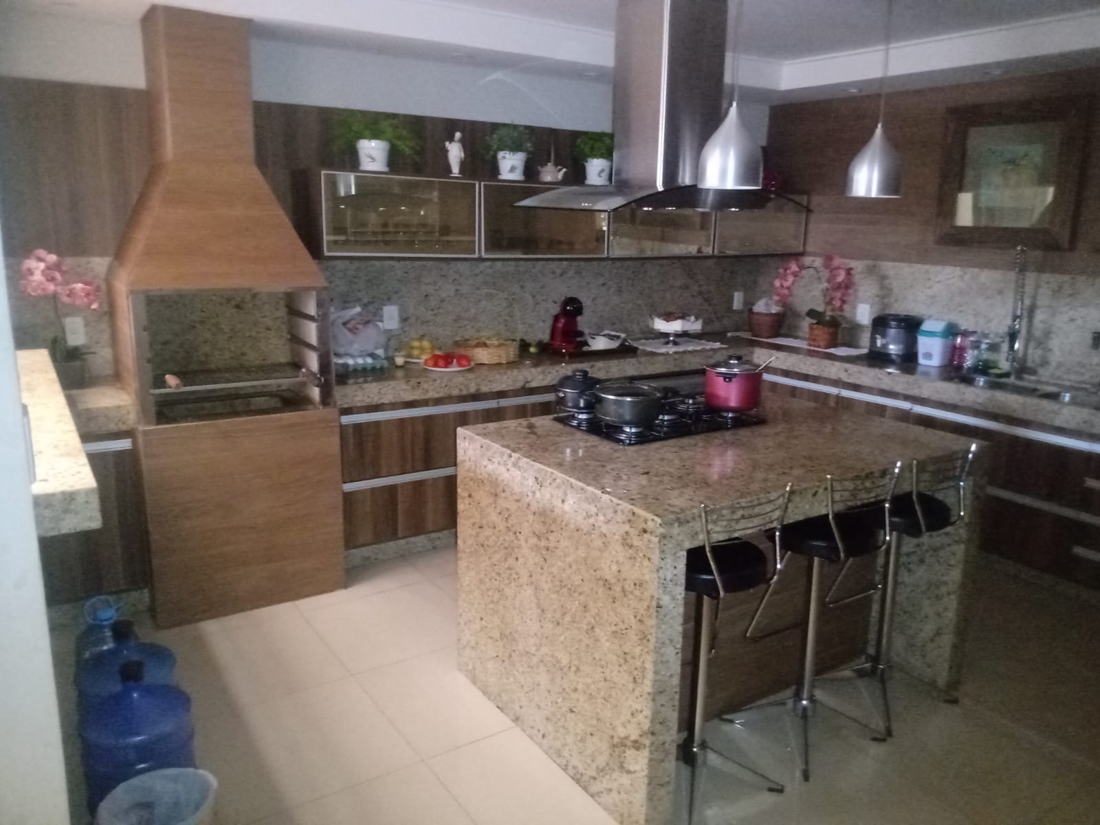 Sobrado parte superior com: 04 suítes sendo 01 com Closet e banheira de hidromassagem, 02 salas de estar conjugadas, sala de tv com sacada, escritório, jardim de inverno e wc social. Parte inferior com: hall de entrada, lavabo, sala de estar, elevador, acesso a escada, sala de jantar, cozinha, área externa com pergolado e lavabo, área de serviço e pequeno quintal, 02 garagens separadas com capacidade para 01 automóvel cada, pintura látex, quintal calçado, teto laje, murada.