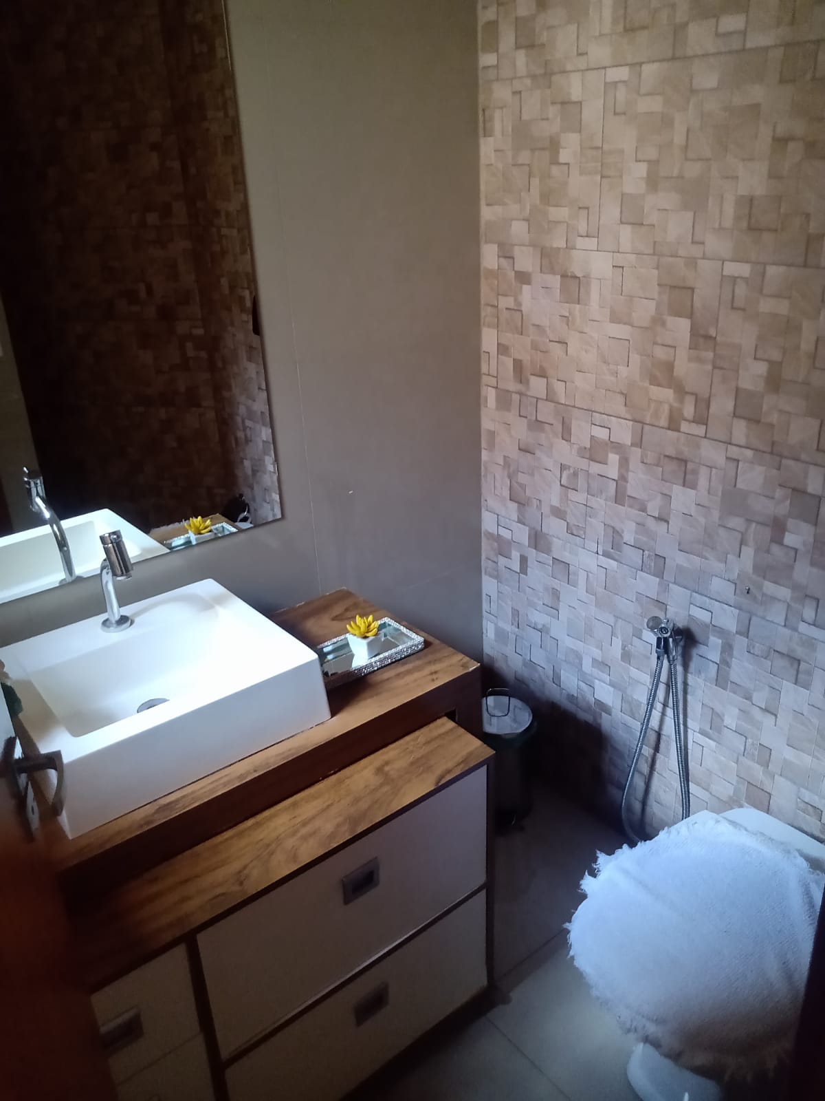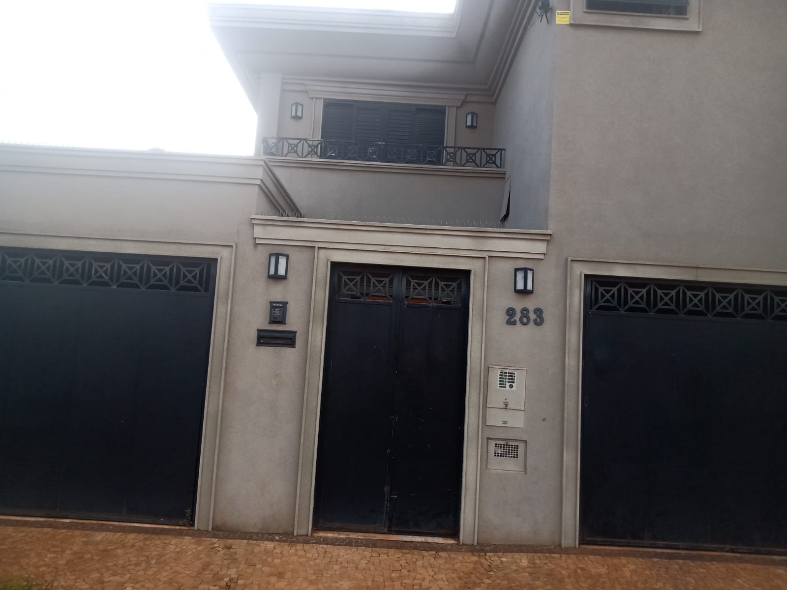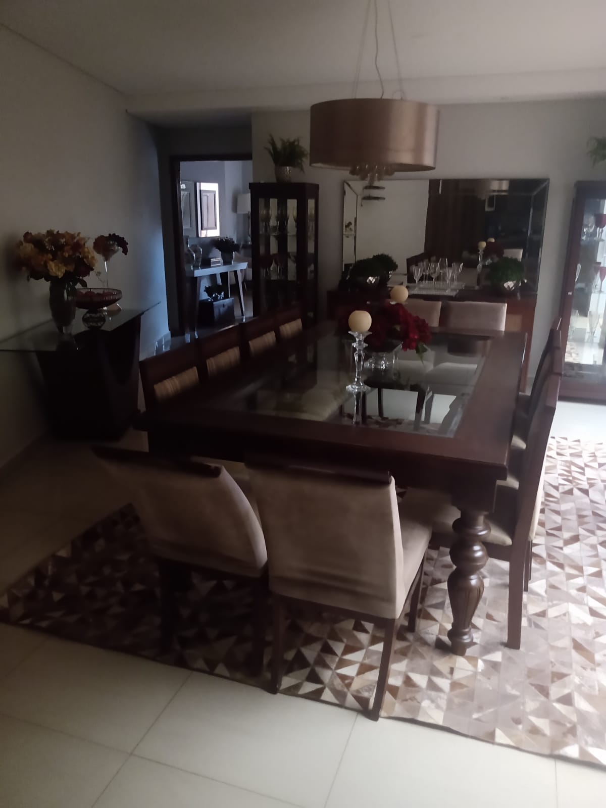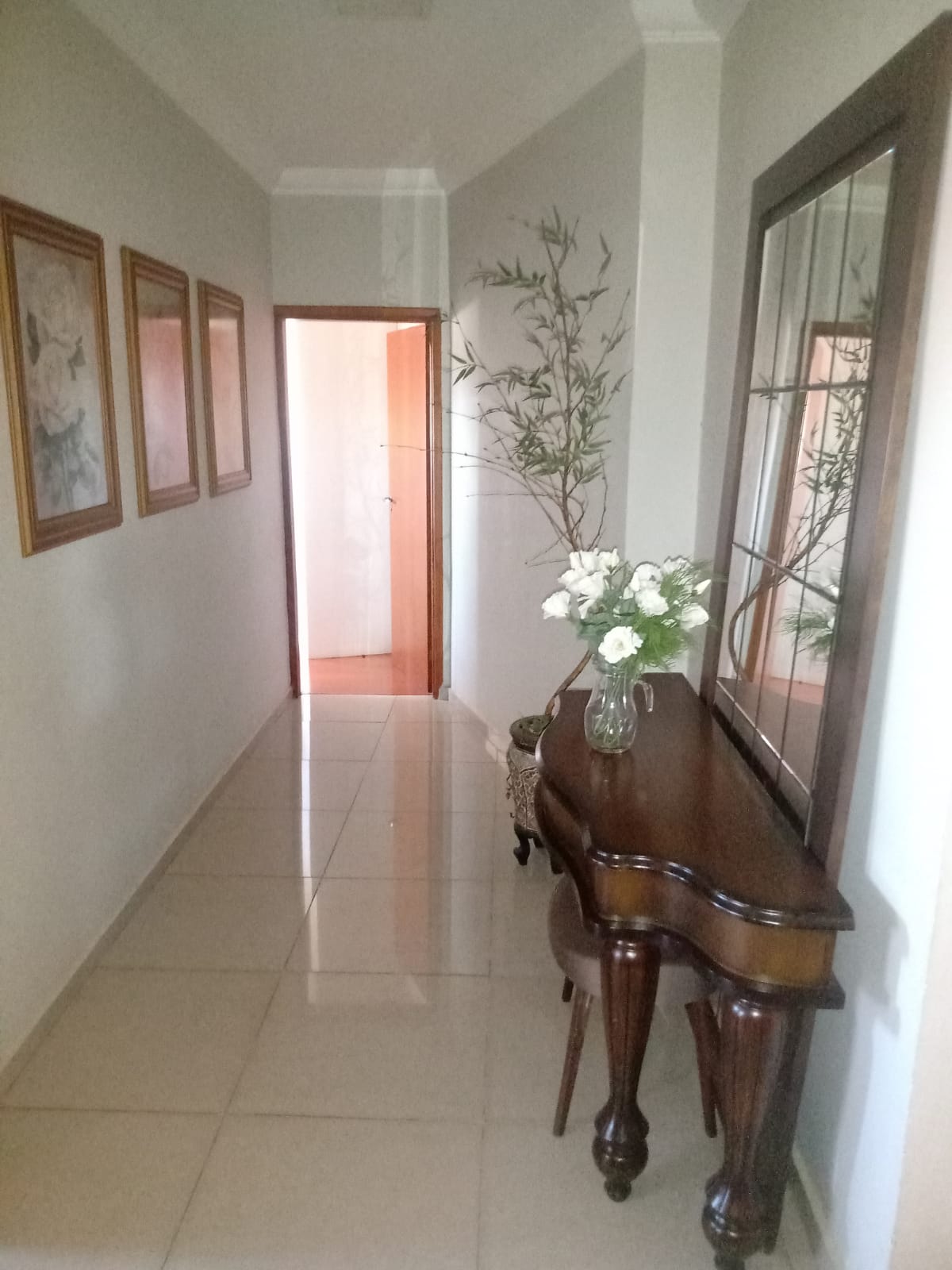 Sobrado parte superior com: 04 suítes sendo 01 com Closet e banheira de hidromassagem, 02 salas de estar conjugadas, sala de tv com sacada, escritório, jardim de inverno e wc social. Parte inferior com: hall de entrada, lavabo, sala de estar, elevador, acesso a escada, sala de jantar, cozinha, área externa com pergolado e lavabo, área de serviço e pequeno quintal, 02 garagens separadas com capacidade para 01 automóvel cada, pintura látex, quintal calçado, teto laje, murada.