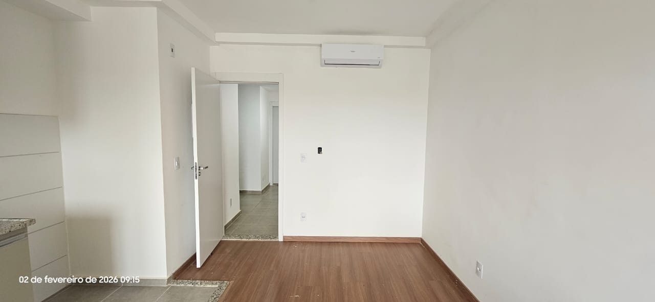Apartamento com 01 suíte com AE, 01 dormitório com AE, sala com sacada, cozinha planejada, wc social, lavanderia, varanda com churrasqueira, 01 vaga de garagem, salão de festa, area de lazer com piscina, pintura látex, quintal calçado, teto laje, piso frio, portas em madeira, janelas em alumínio, murada.