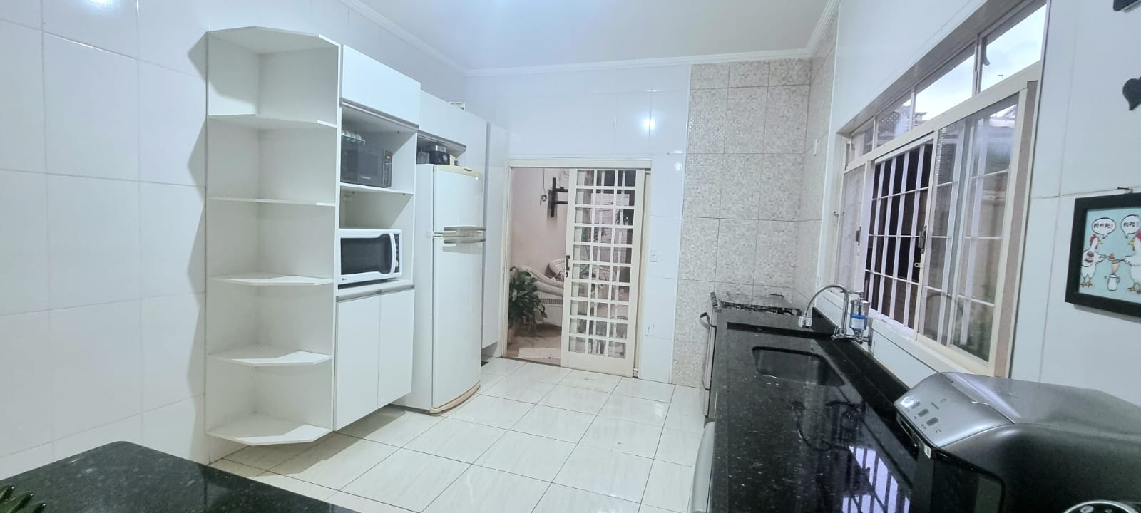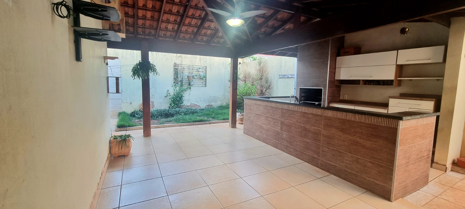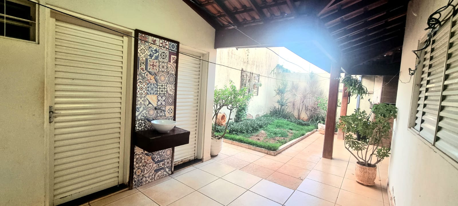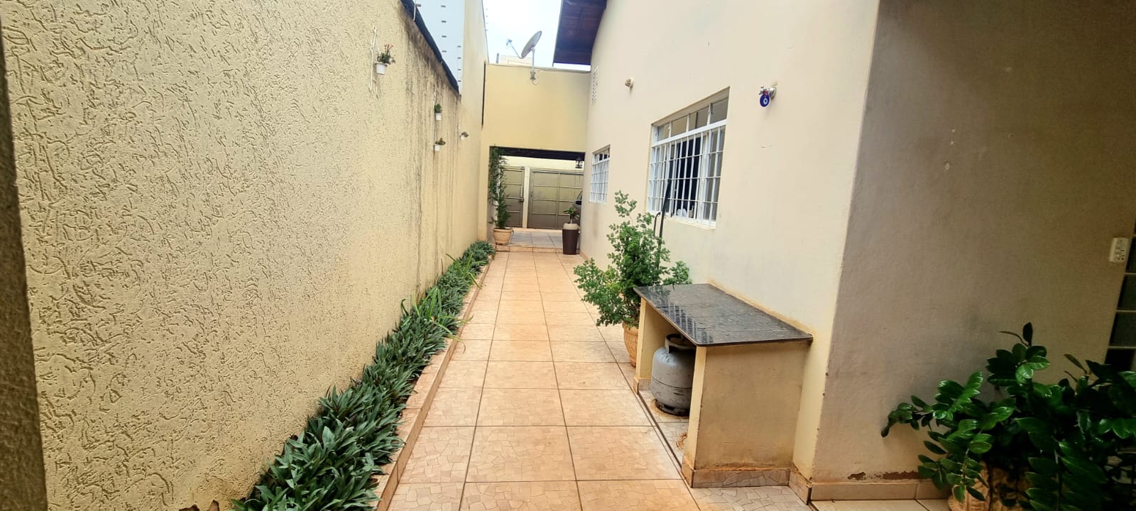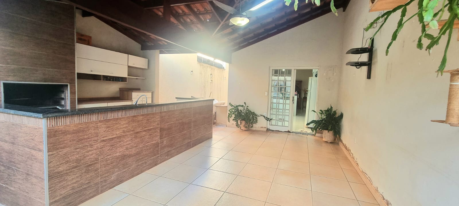Casa com 01 suíte com AR, 02 dormitórios, sala ampla, copa, cozinha planejada, wc social, wc externo, lavanderia, varanda com churrasqueira, garagem com portão eletronico, jardim, energia solar, pintura látex, quintal calçado, teto laje, piso frio, portas de ferro e madeira e blindex, janelas em ferro, murada.