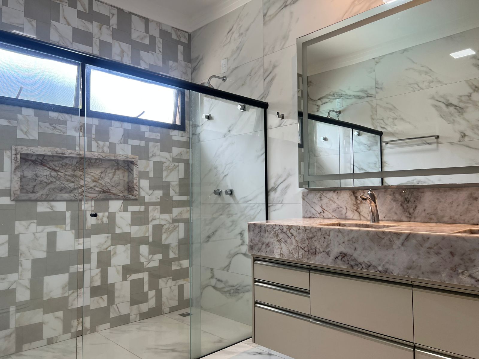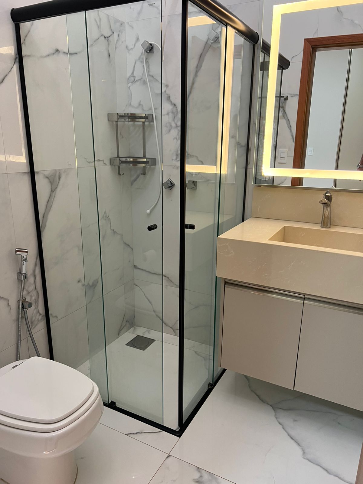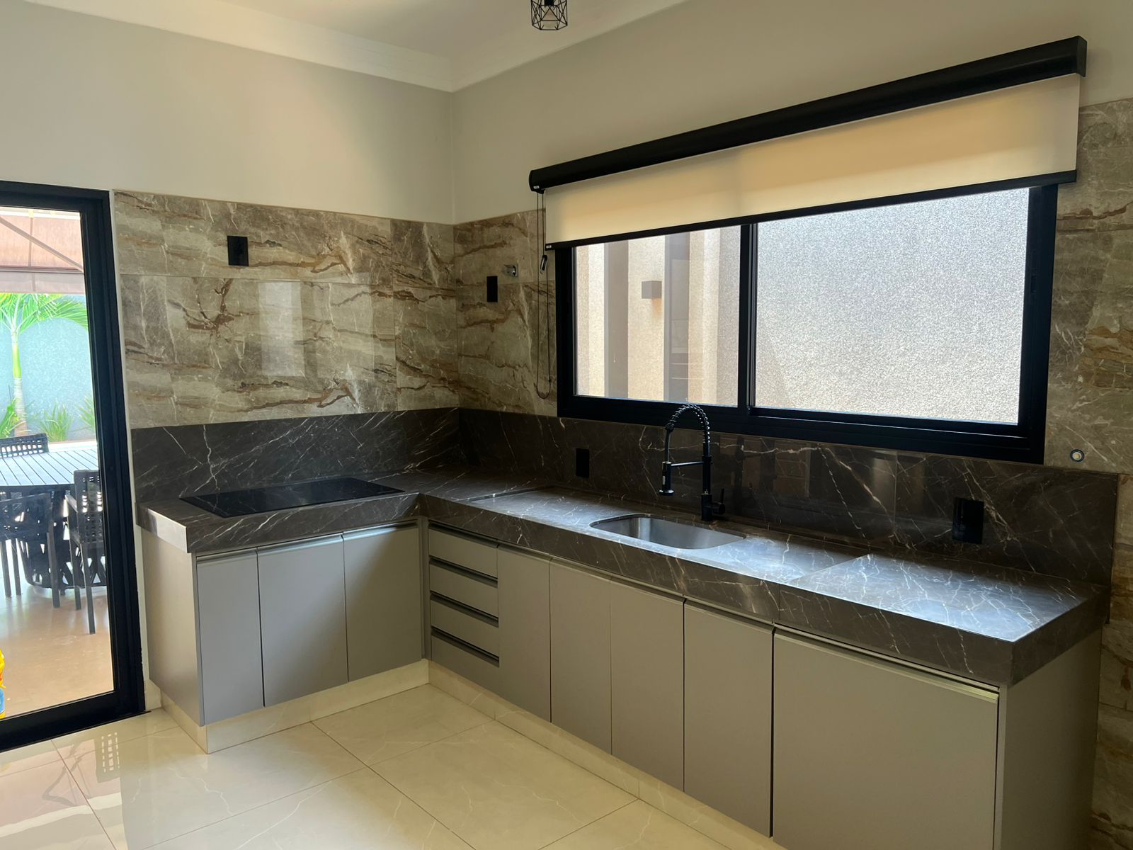 A cozinha e demais espaços contam com mobiliário planejado e acabamentos sofisticados, incluindo pedras e torneiras importadas.