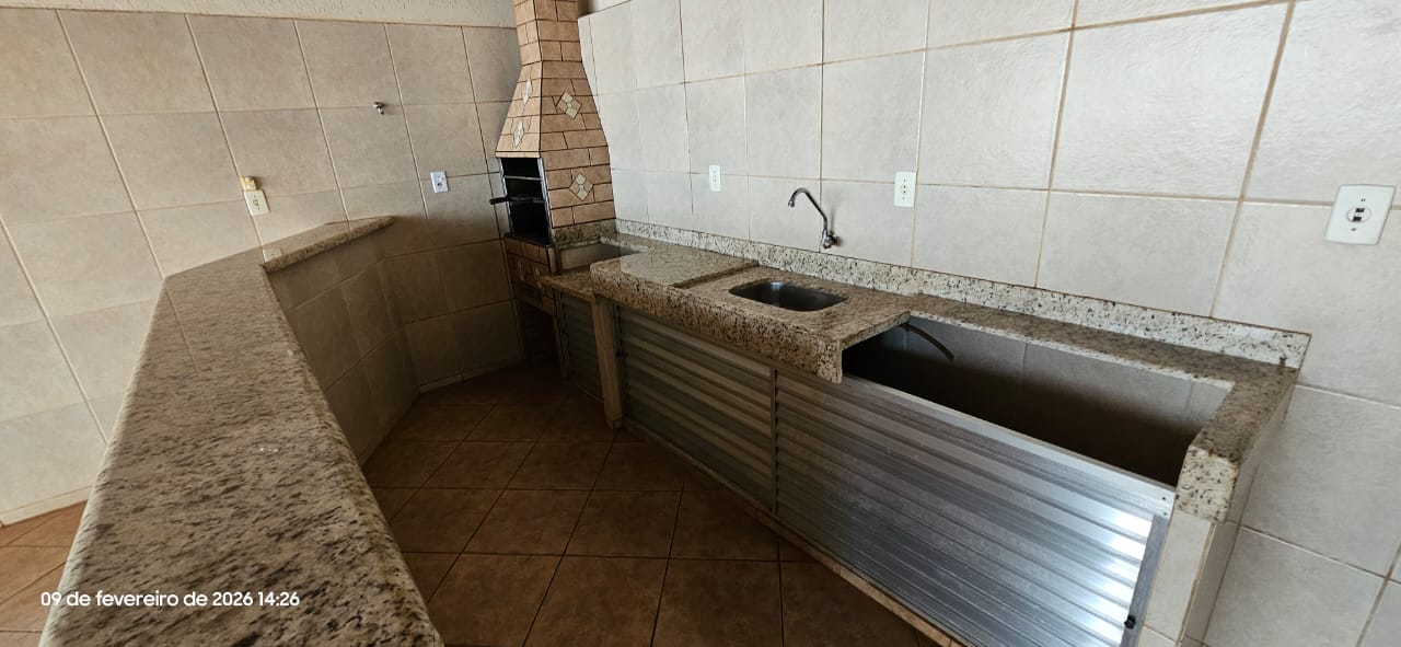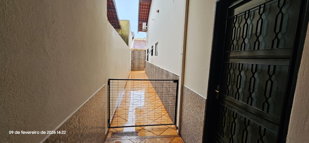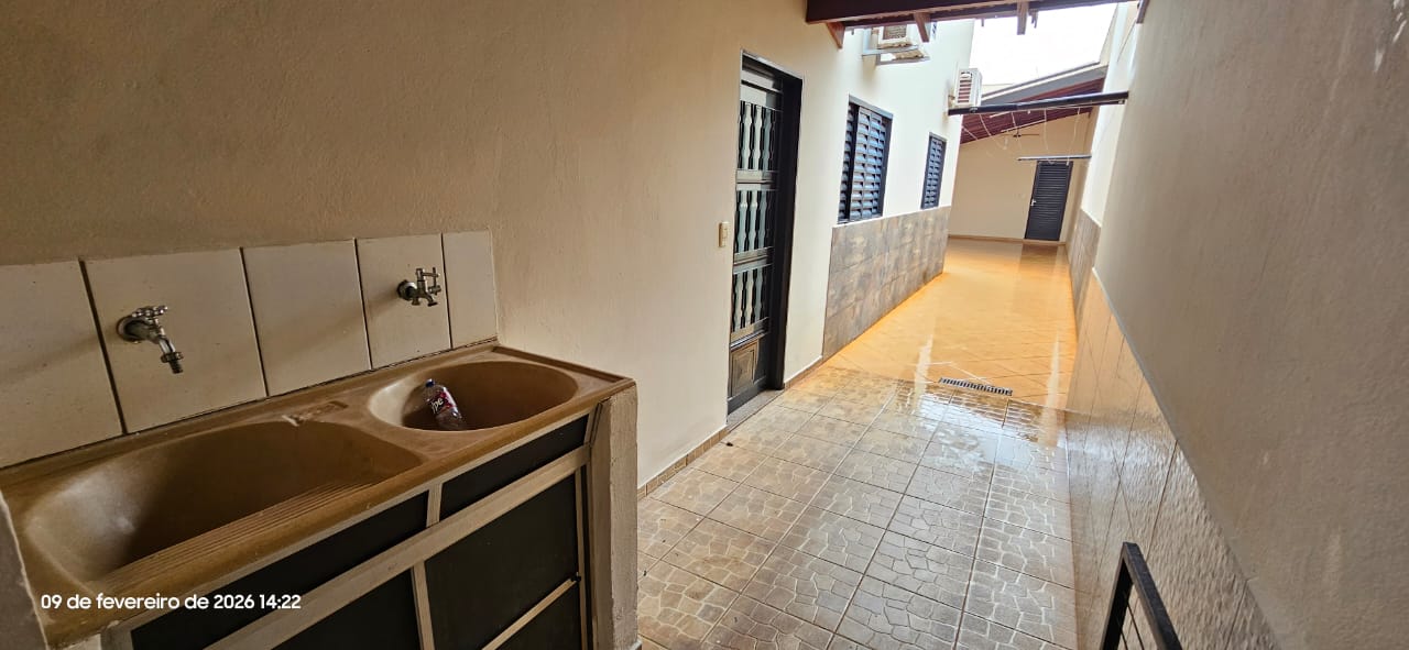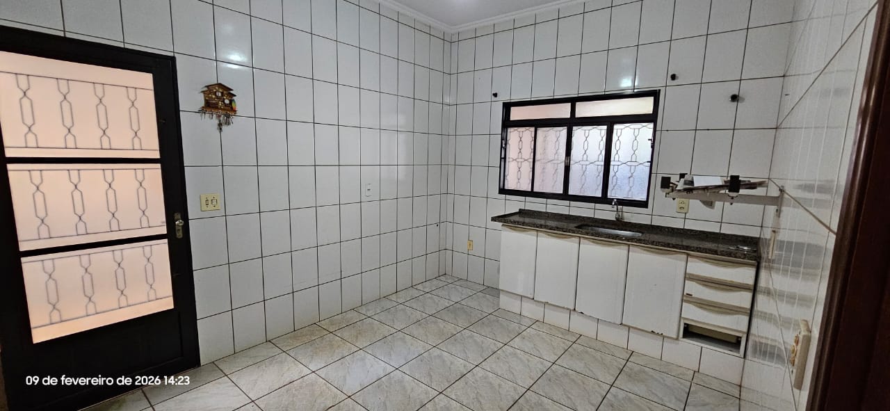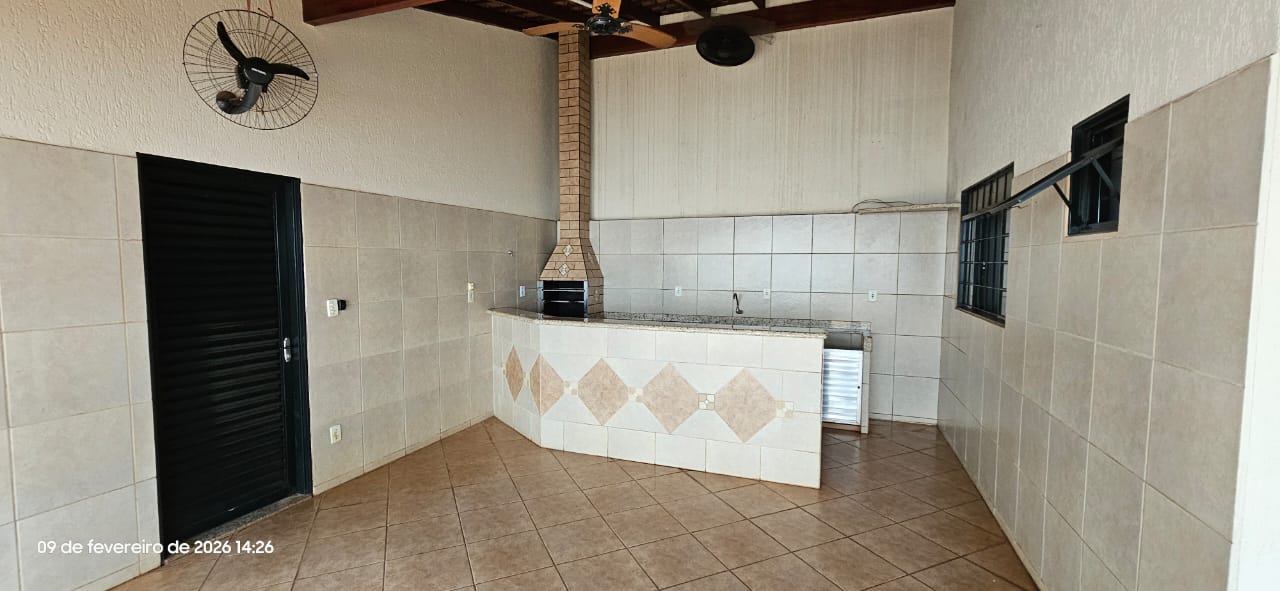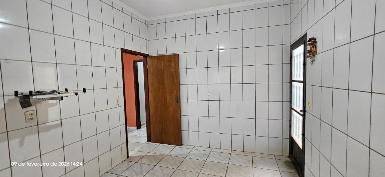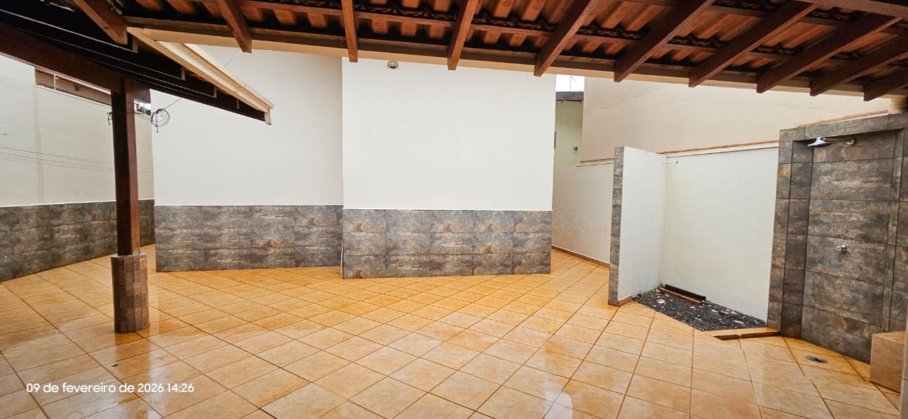 Casa com 01 suíte, 02 dormitórios, sala, cozinha, wc social, wc externo, área de serviço, 02 despejos, varanda com pia e churrasqueira, garagem para vários carros, pintura látex, quintal calçado, teto laje, piso frio, portas em ferro e madeira, janelas em ferro com grades, murada.