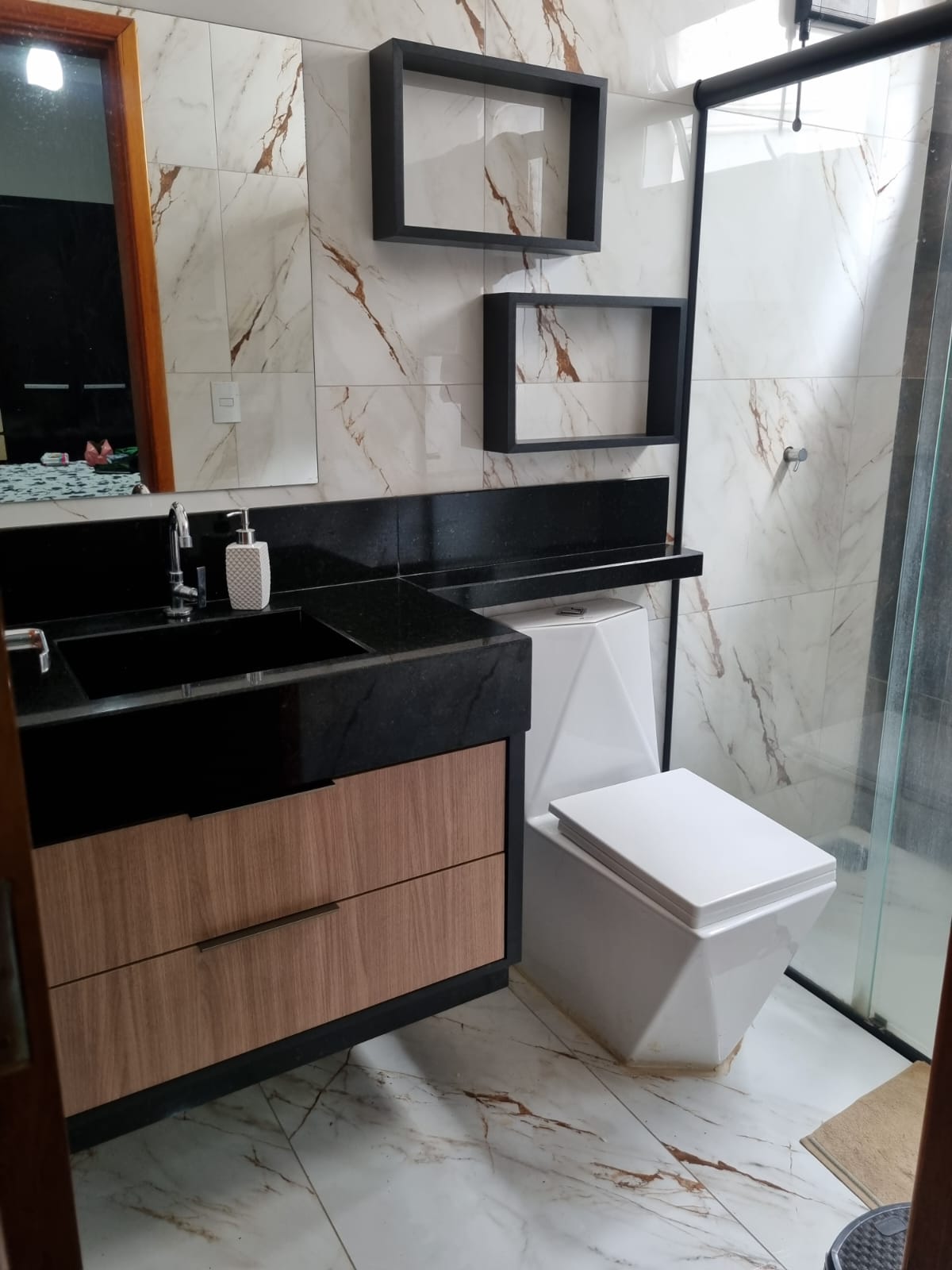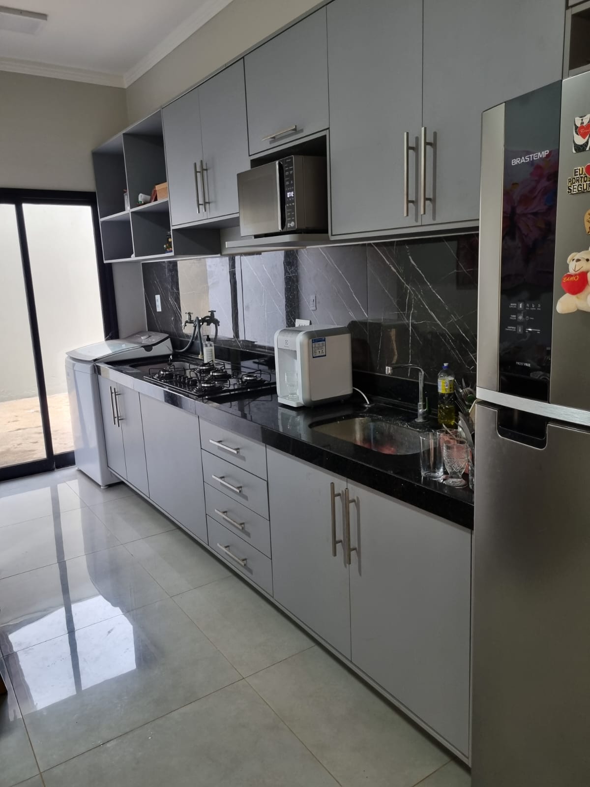 Casa com 01 suíte com ar condicionado e painel de TV, sala, cozinha planejada com cooktop, lavabo, entrada para 03 carros, portão eletrônico, quintal calçado, teto laje, piso porcelanato, portas em alumínio, blindex e madeira, janelas em alumínio, murada.