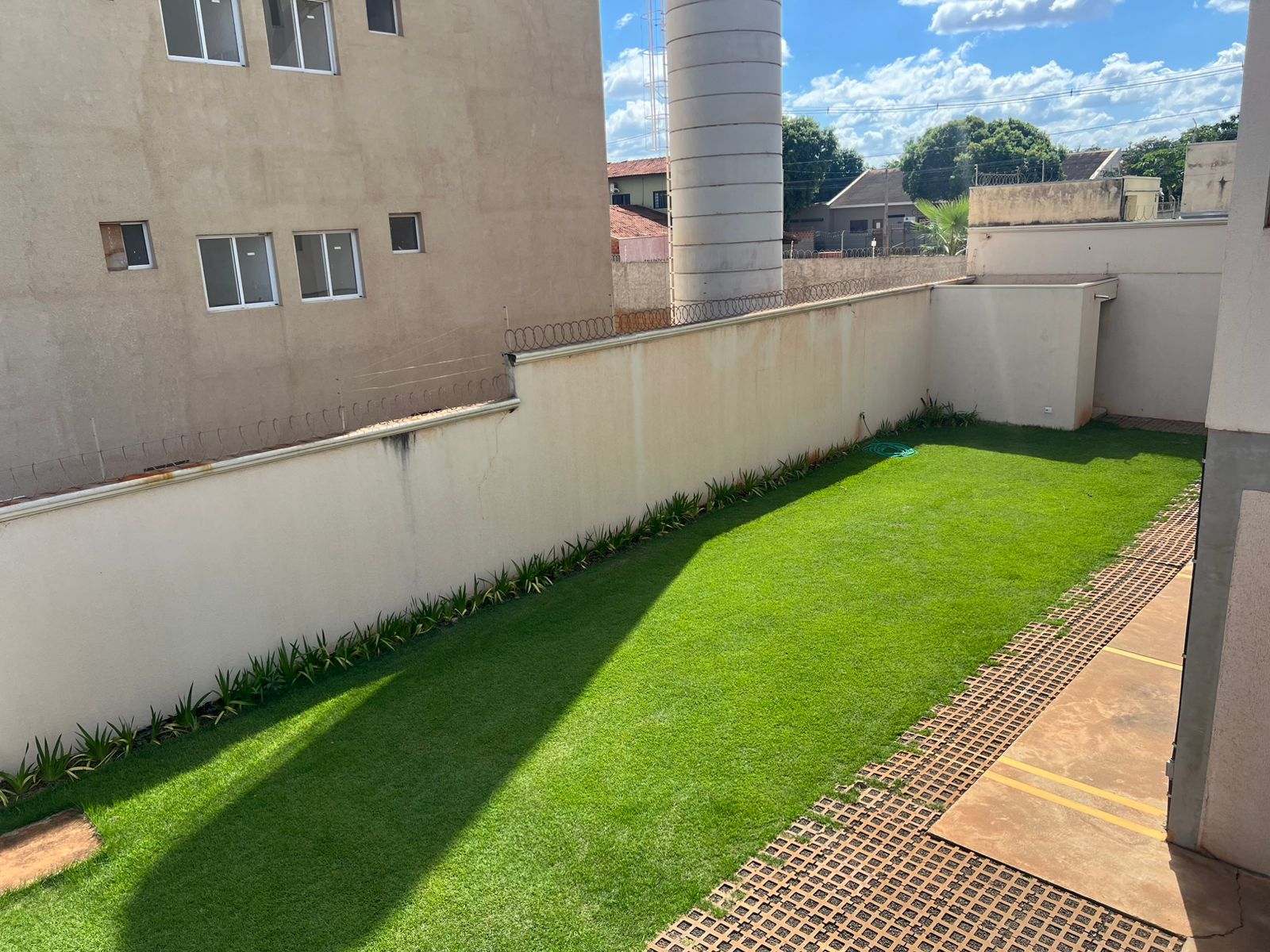 Apartamento com 01 suíte com sacada e AR condicionado, 01 dormitório com Ar condicionado, sala, cozinha, wc social, área de serviço, 01 vaga na garagem, pintura látex, quintal calçado, teto laje, piso porcelanato, portas em madeira, janelas em alumínio, murada.