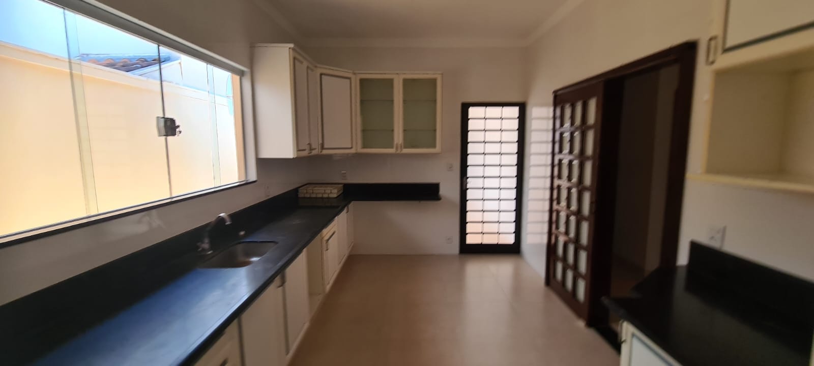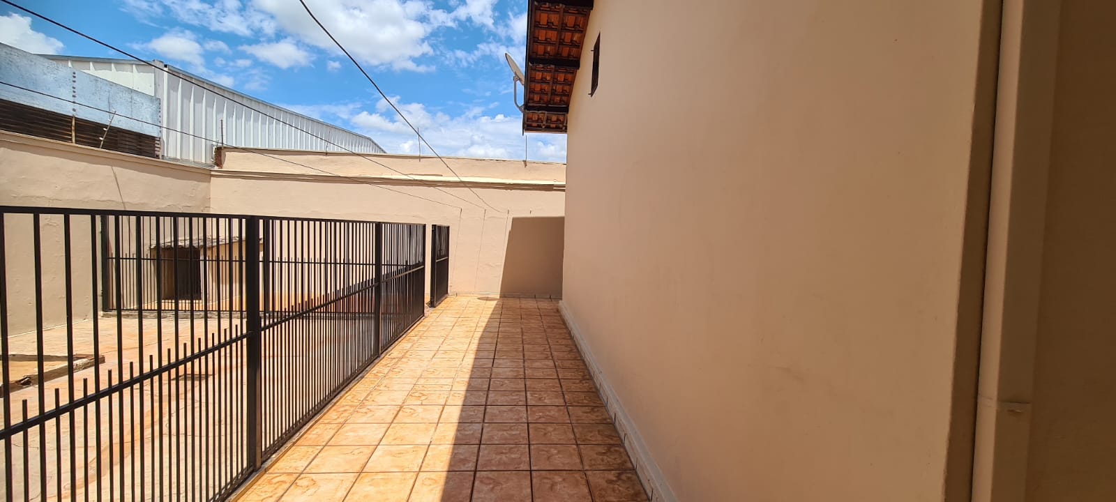 Casa com 01 suíte com AE, 02 dormitórios, sala, copa, cozinha planejada, wc social, área de serviço, varanda, despejo, garagem para 04 carros, portão eletrônico, cerca elétrica, pintura látex, quintal calçado, teto laje, piso frio, portas em ferro e madeira, janelas em ferro com grades, murada.