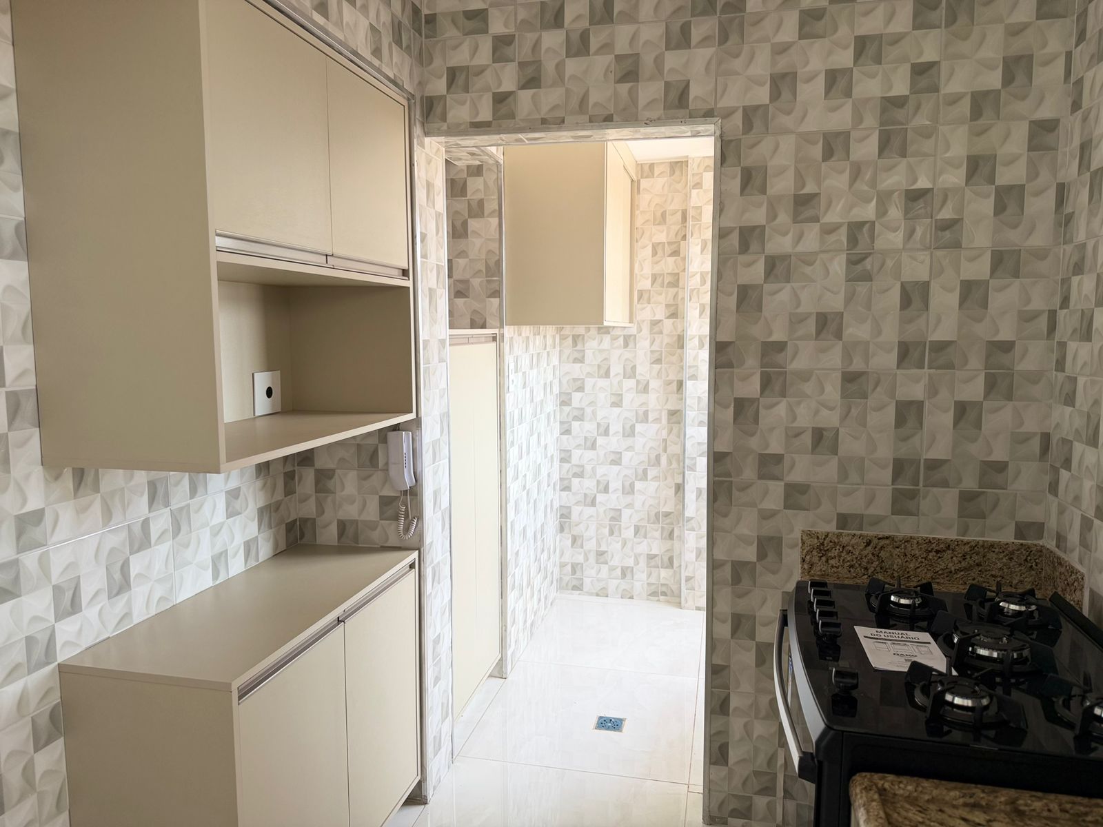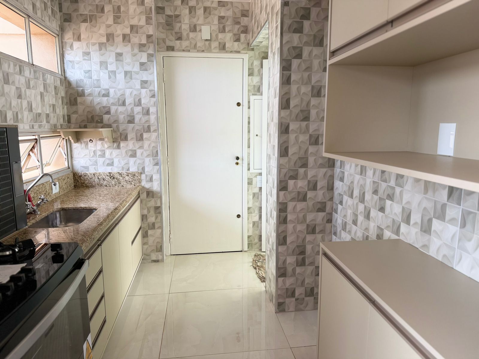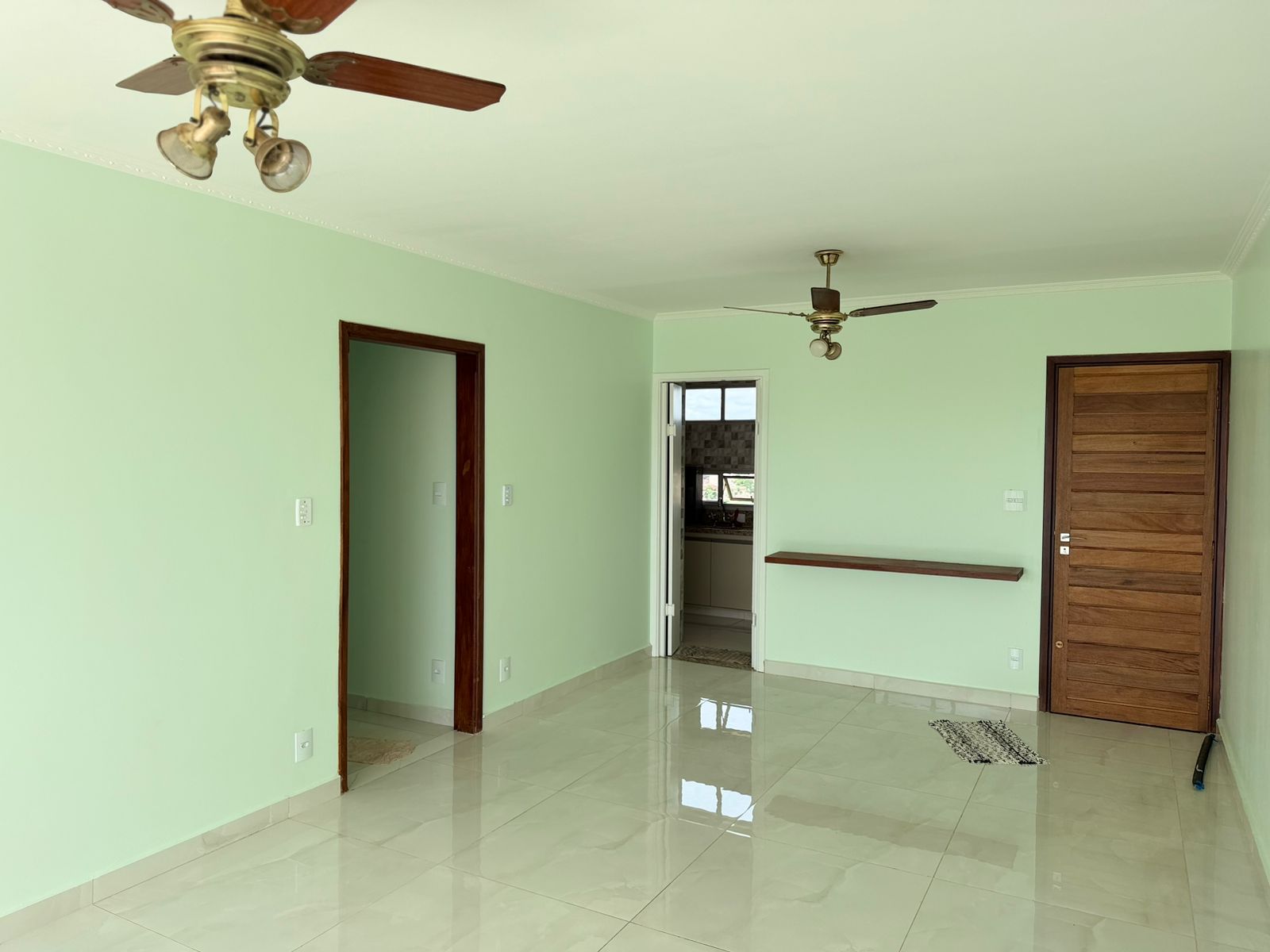 Apartamento com 01 suíte com AE, 02 dormitórios com AE, sala de visita, sala ampla com sacada, cozinha planejada, wc social, lavanderia, garagem para 01 carro, pintura látex, quintal calçado, teto laje, piso porcelanato, portas em madeira e alumínio, janelas de alumínio, murada.