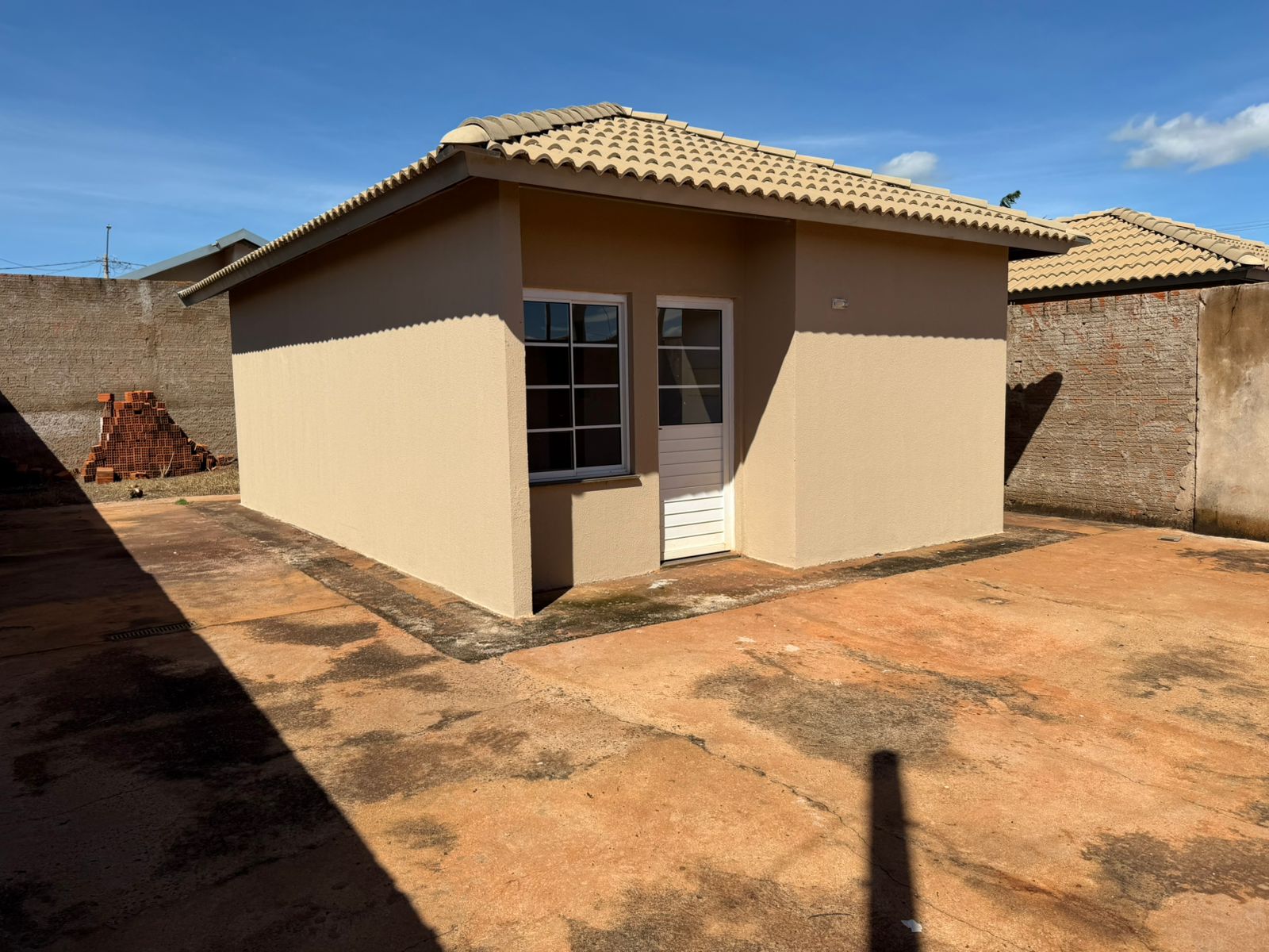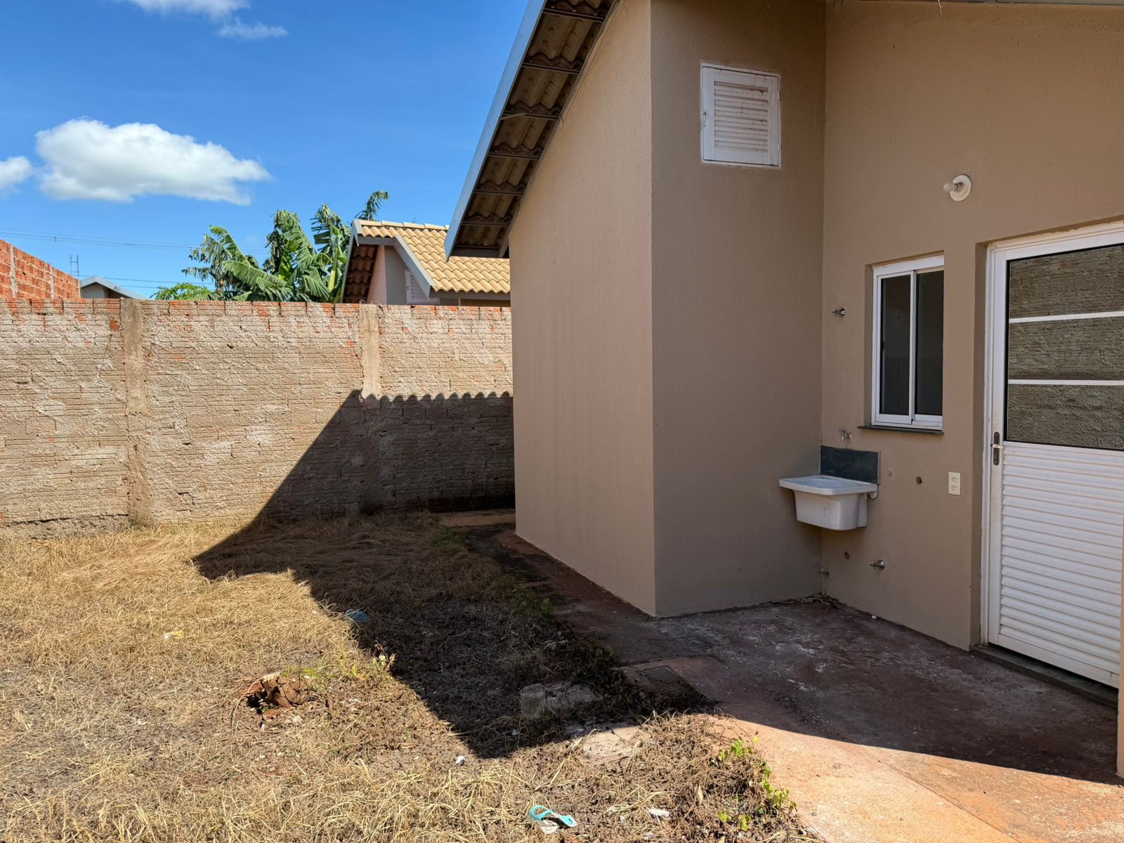 Casa com 02 dormitórios, sala, cozinha, wc social, área de serviço, entrada para carro, quintal parte calçado, teto laje, piso frio, portas em alumínio e madeira, janelas em alumínio, murada.