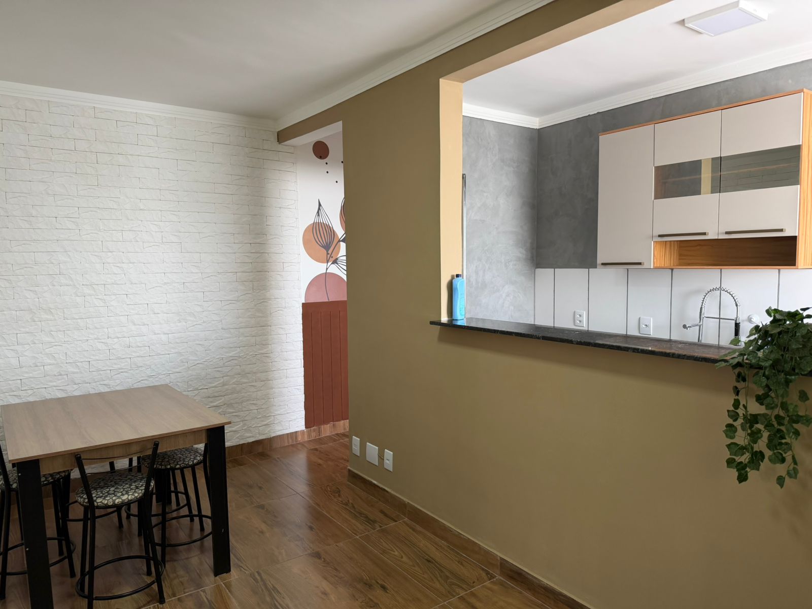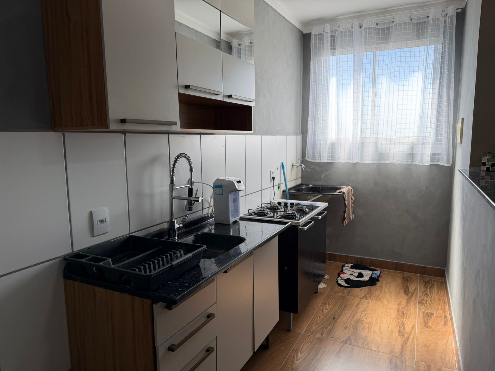 Apartamento com 02 dormitórios, sala, cozinha planejada, wc social com blindex, lavanderia, área de lazer com playground, espaço fitness, espaço gourmet, churrasqueira, mini-campo, garagem para 01 carro, pintura látex, teto laje, piso frio, portas em madeira, janelas em alumínio.