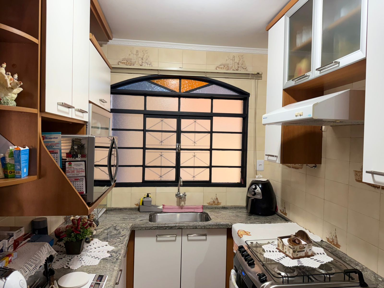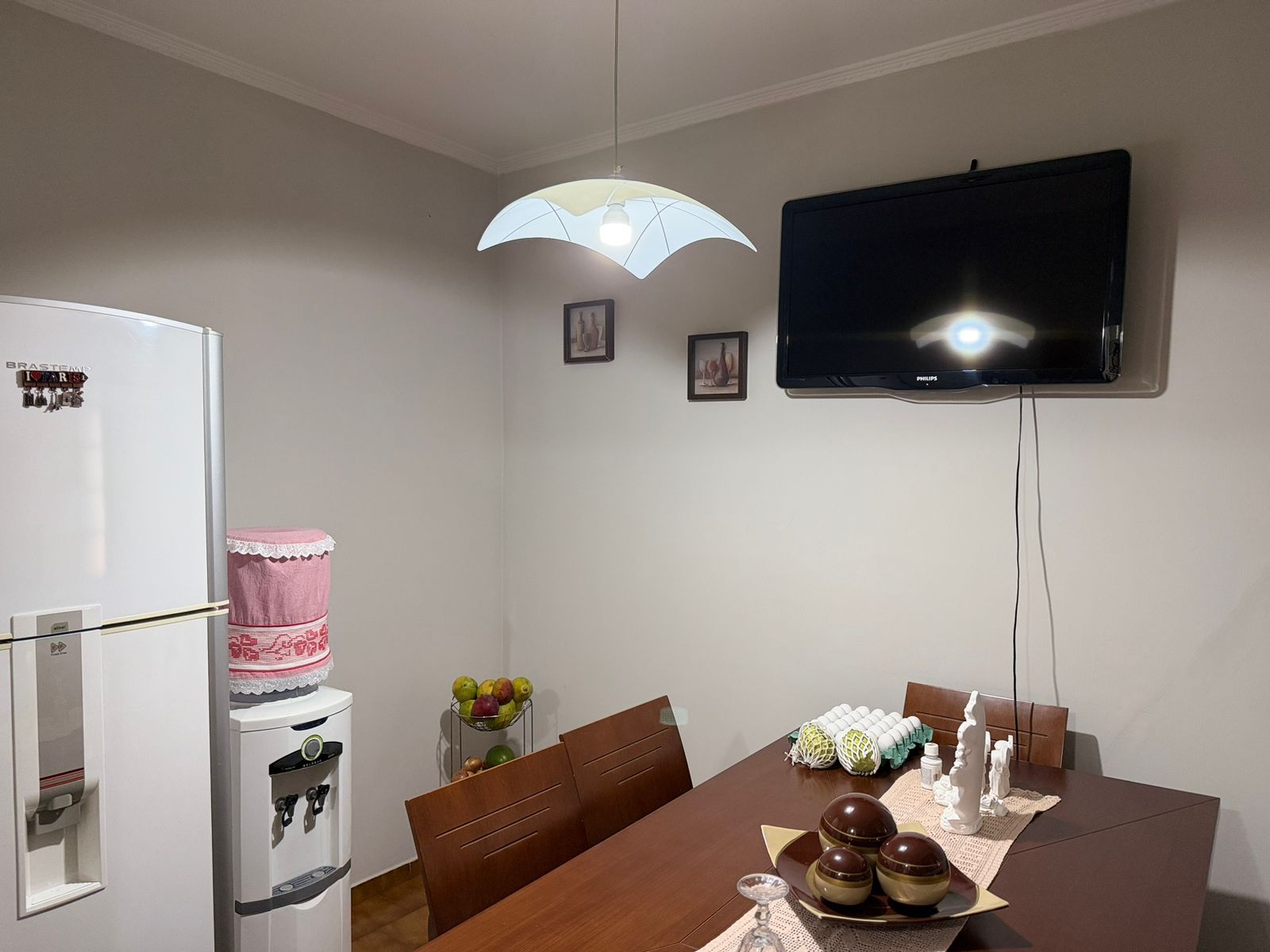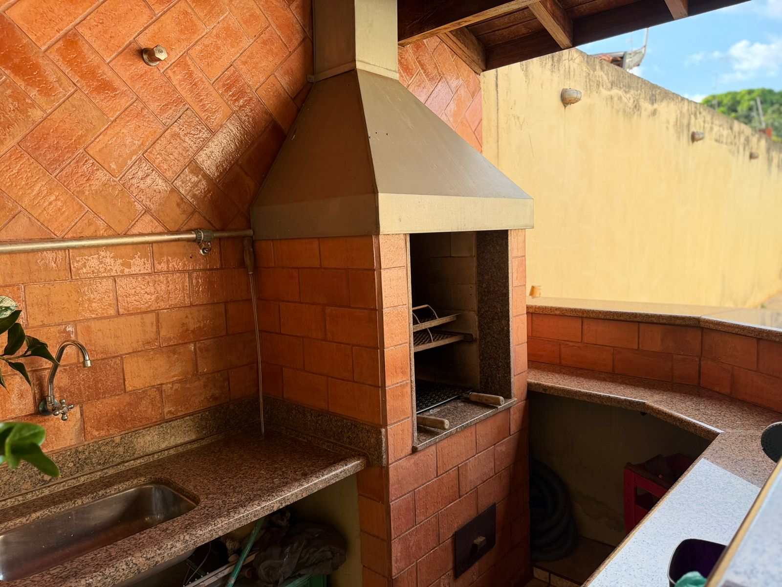 Sobrado com 03 dormitórios com AE, sala de visita, sala de tv, copa, cozinha, 03 wc sociais, area de serviço, varanda com churrasqueira, piscina, garagem para 03 carros, energia solar, quintal com frutas, teto laje, piso frio, portas em ferro e madeira, janelas em ferro.