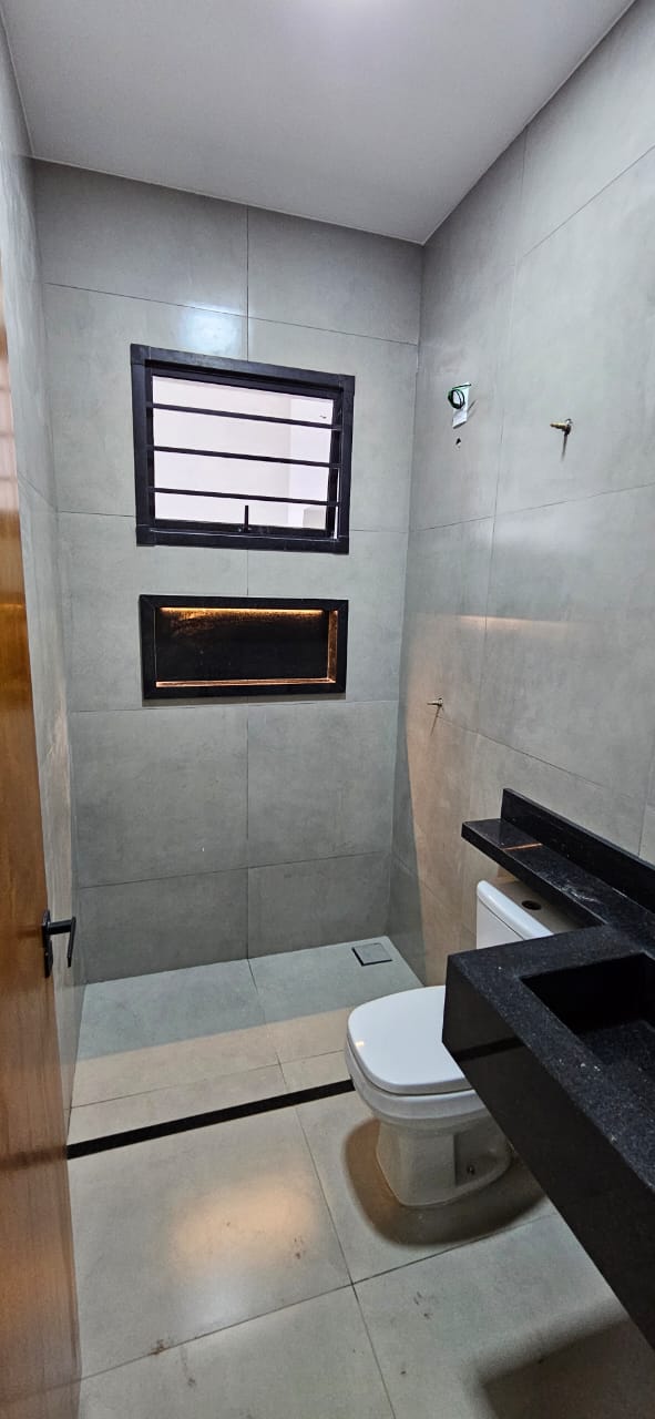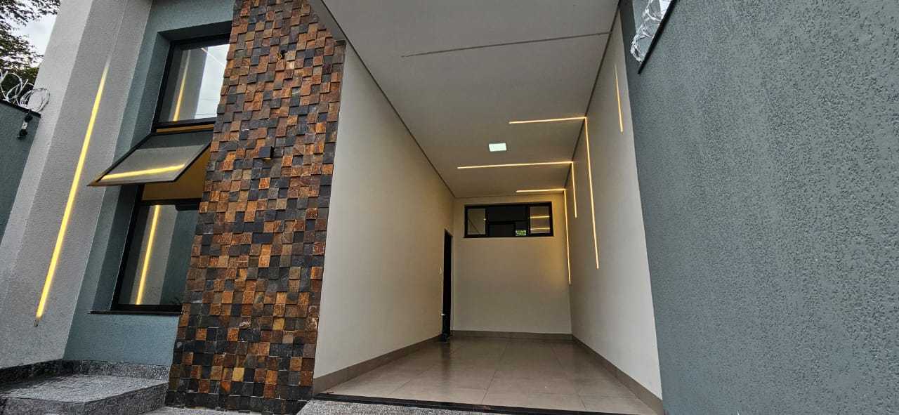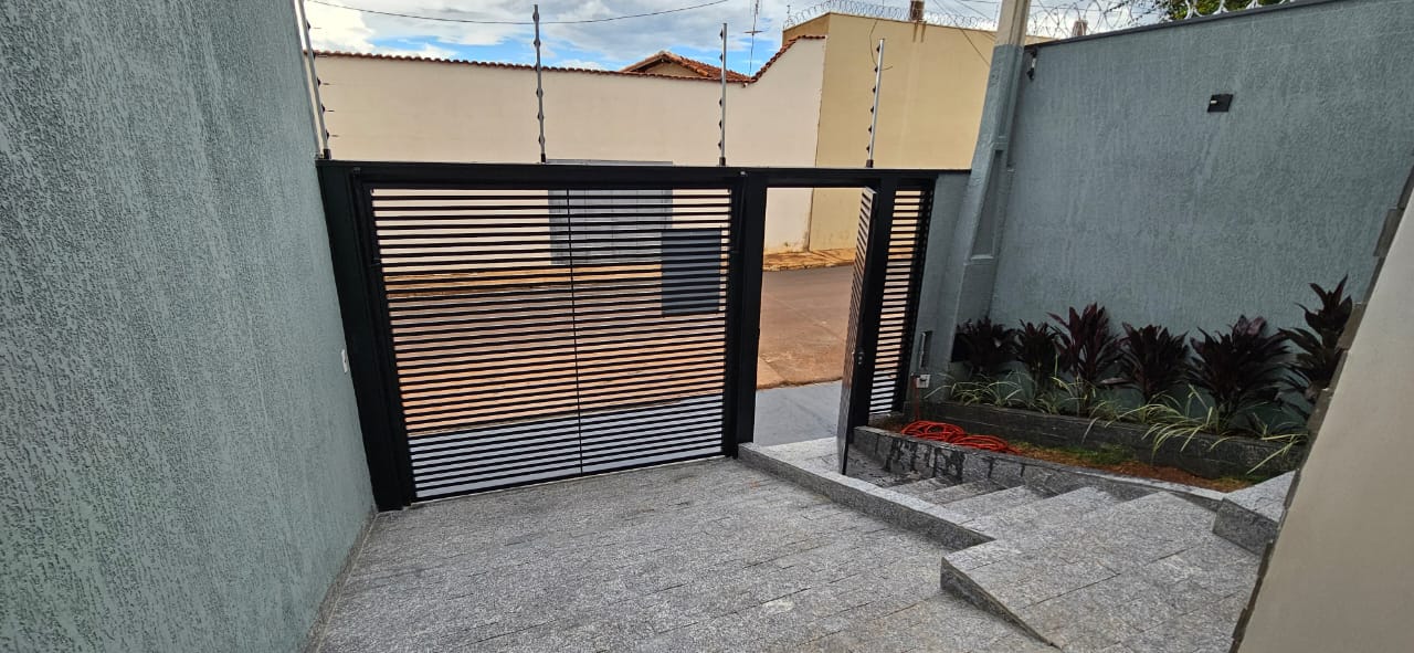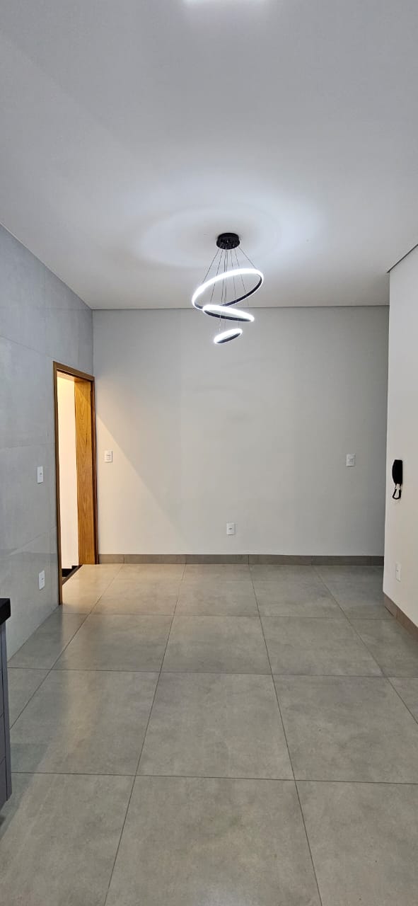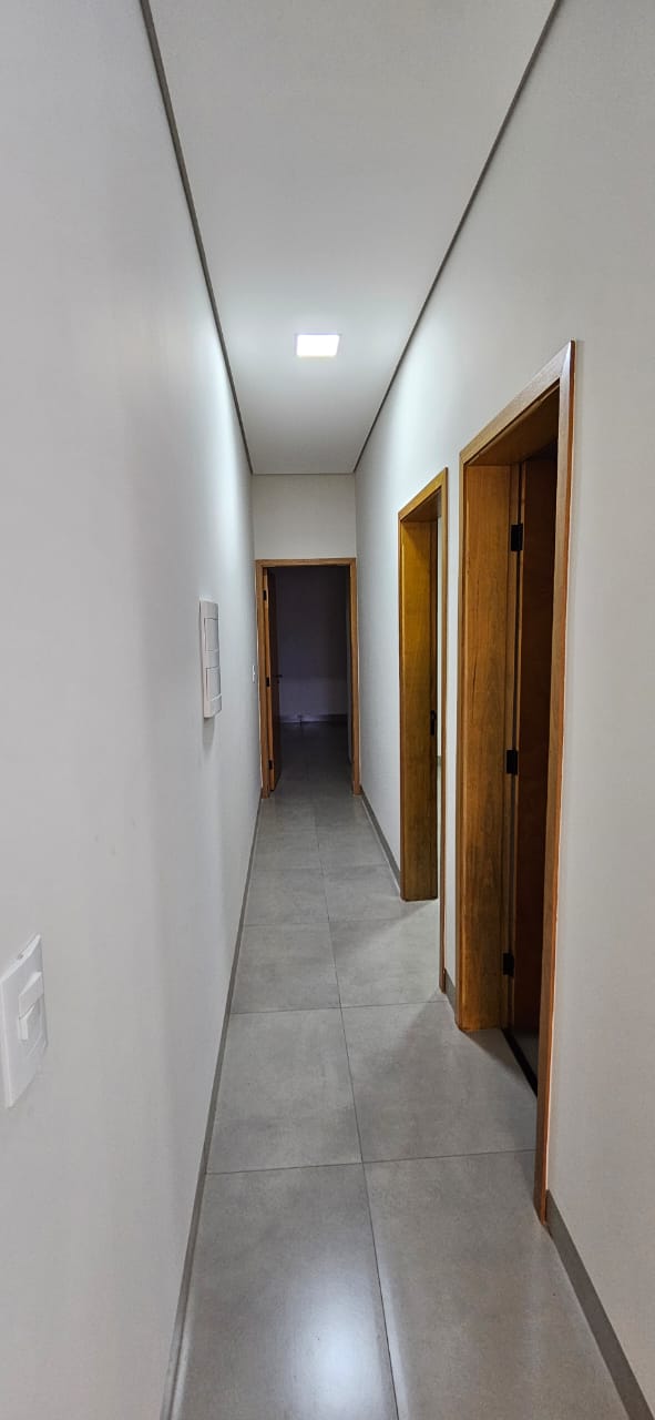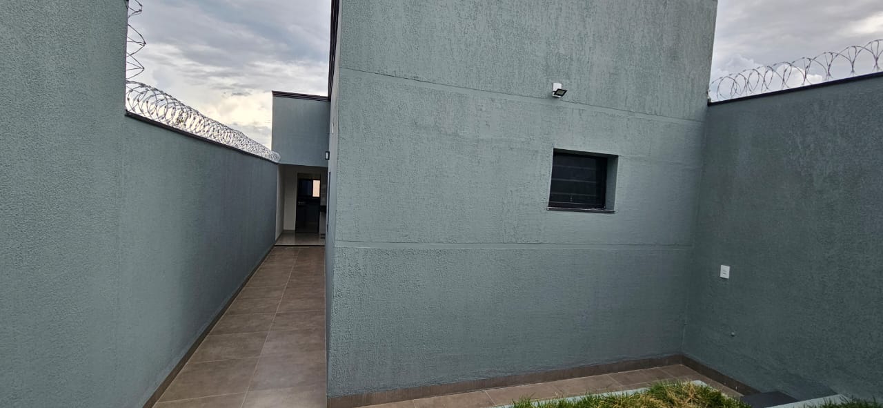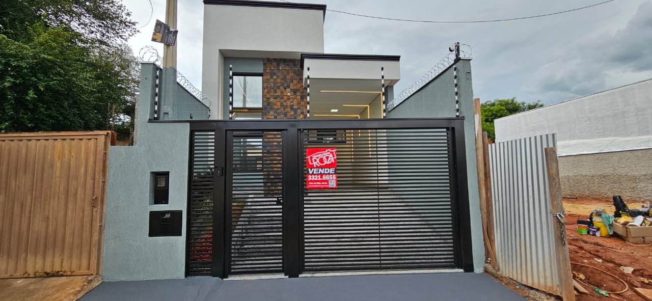 Casa com 01 suíte, 01 dormitório, sala, wc social, cozinha, área de serviço, garagem, teto laje e gesso, piso porcelanato, quintal parte calçado, portas de alumínio e madeira, janelas de ferro.