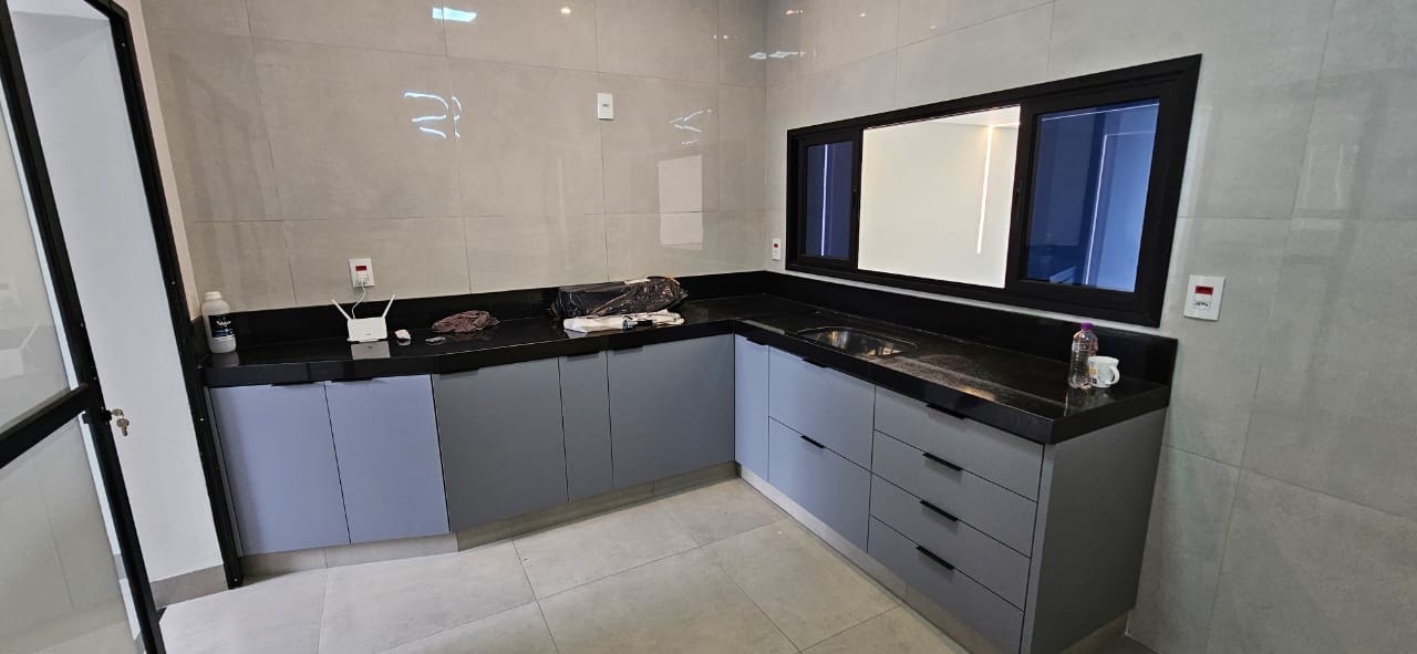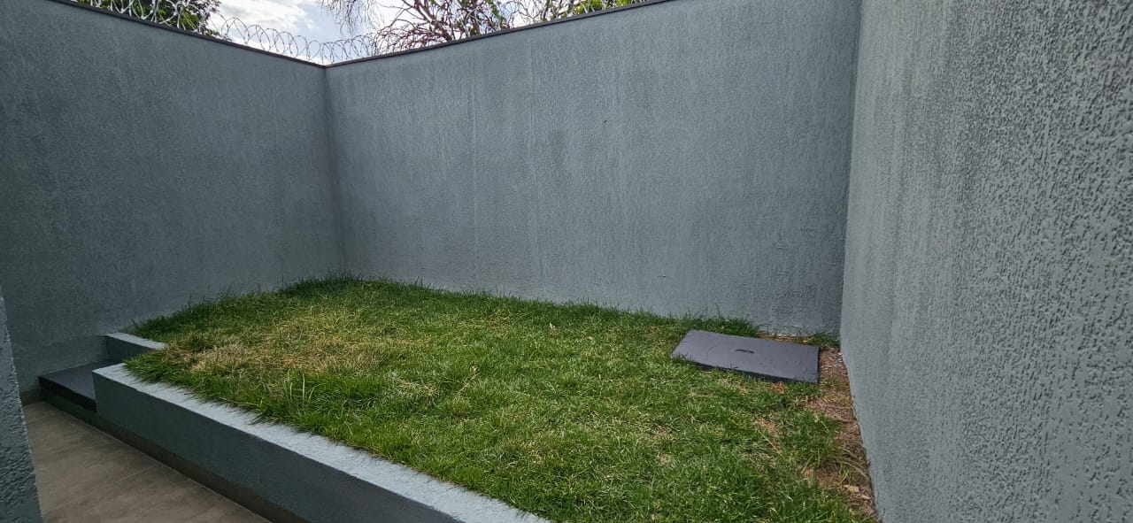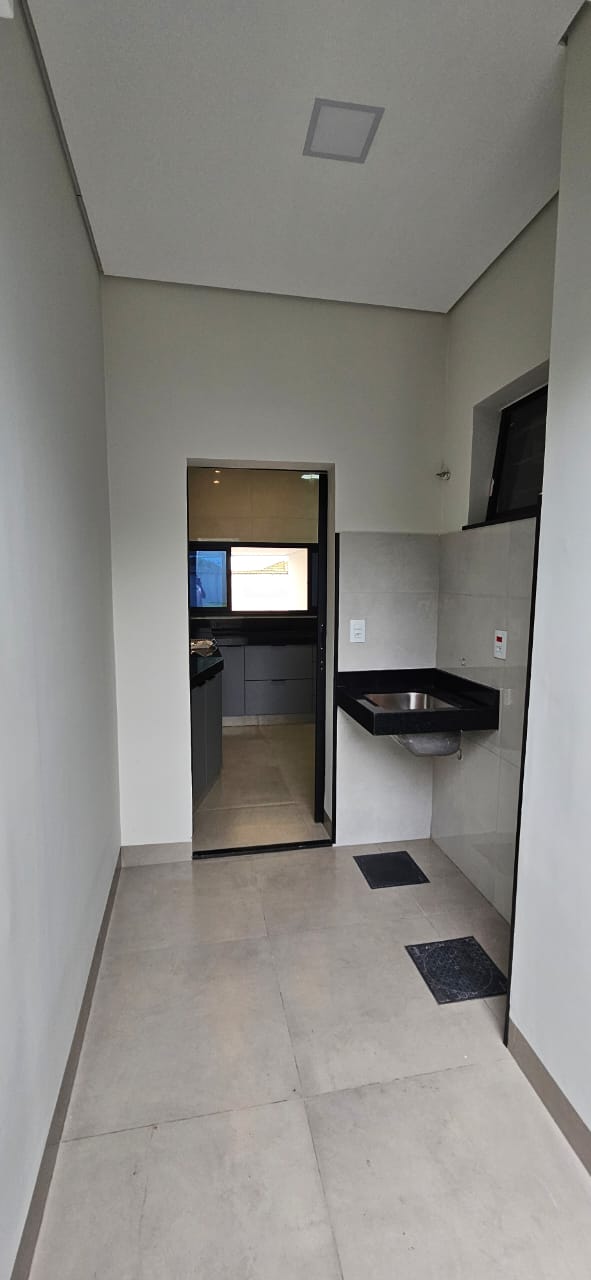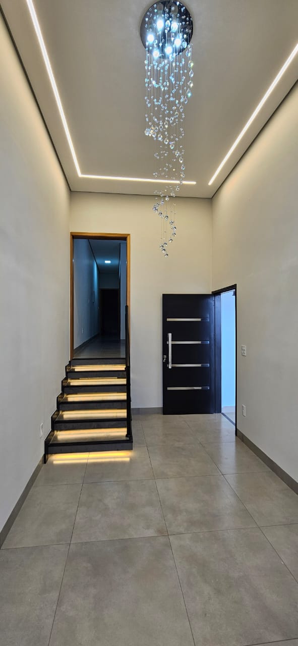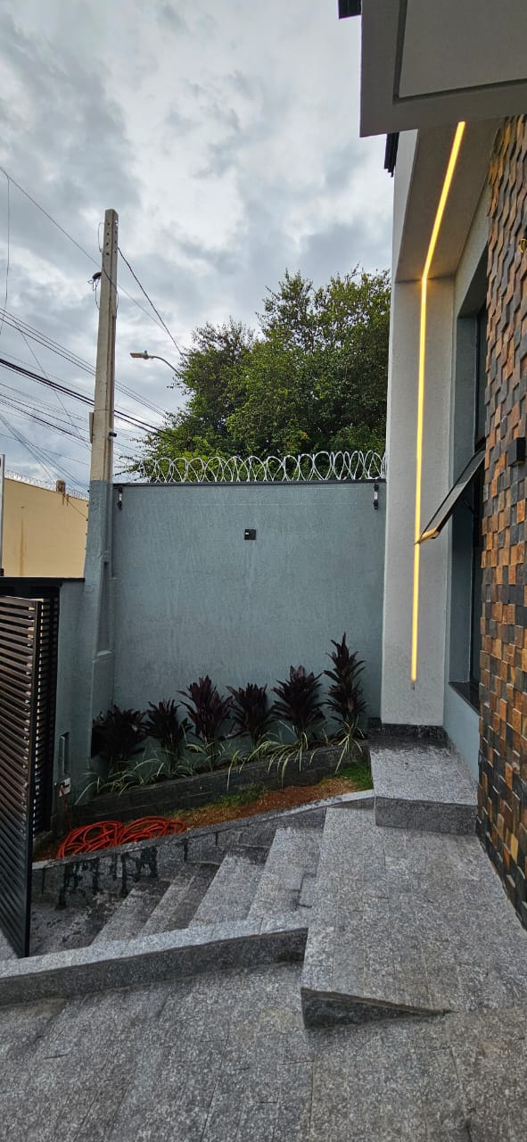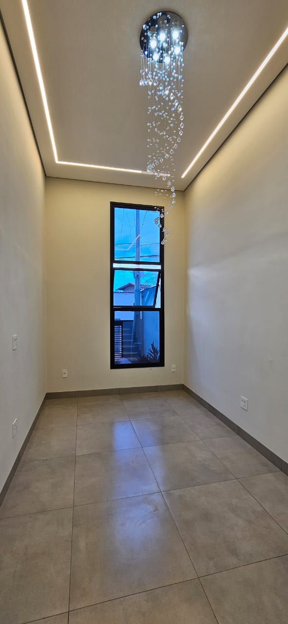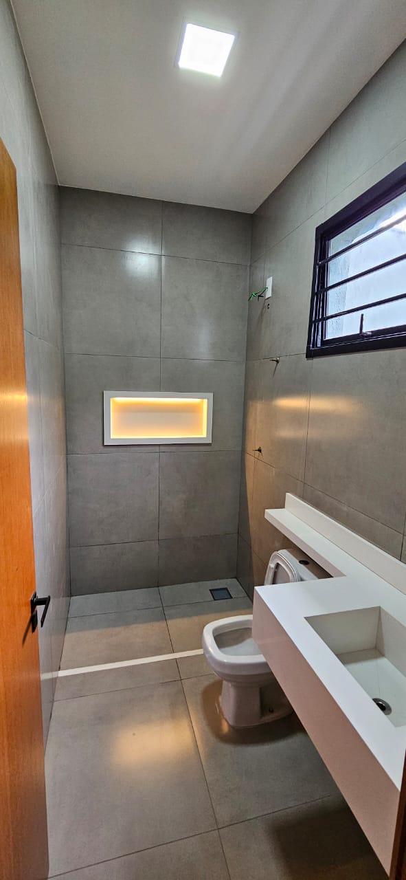Casa com 01 suíte, 01 dormitório, sala, wc social, cozinha, área de serviço, garagem, teto laje e gesso, piso porcelanato, quintal parte calçado, portas de alumínio e madeira, janelas de ferro.