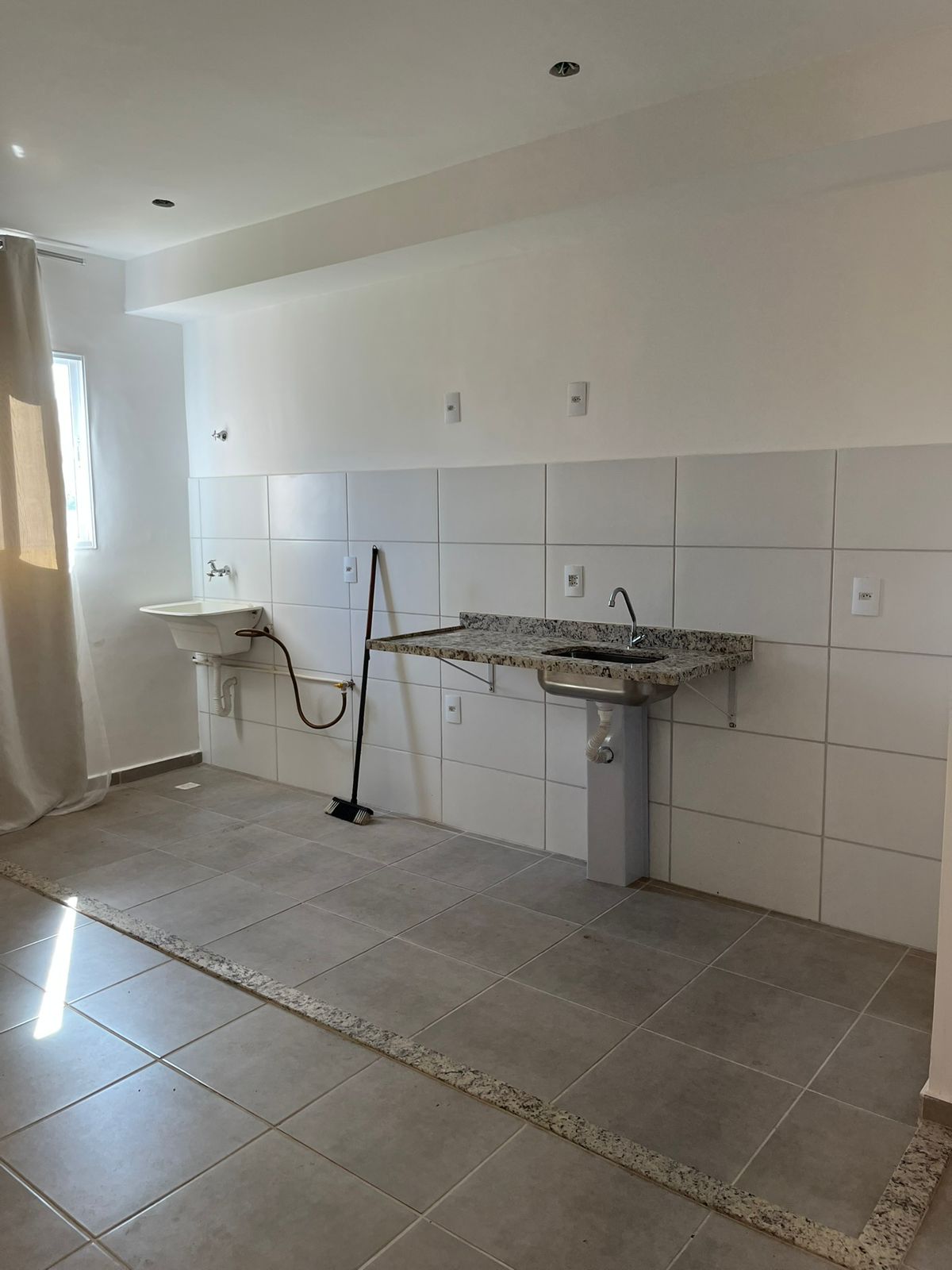 Apartamento com 01 suíte, 01 dormitório, sala, sacada, cozinha, wc social, 01 vaga de garagem, pintura látex, quintal calçado, teto laje, piso frio e paviflex, portas em madeira, janelas em alumínio, murada