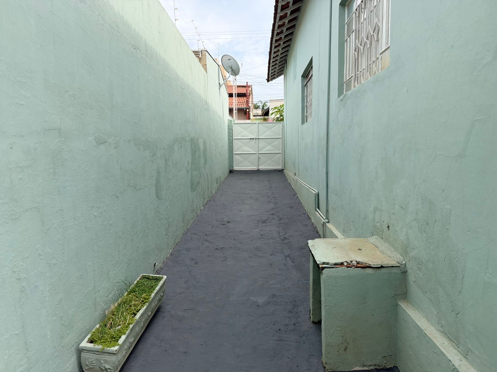 Casa com 02 dormitórios, sala, copa, cozinha, wc social, wc externo, despejo, área de serviço, jardim, garagem, pintura látex, quintal calçado, teto madeira, piso frio e taco, portas em ferro e madeira, janelas em ferro, murada.