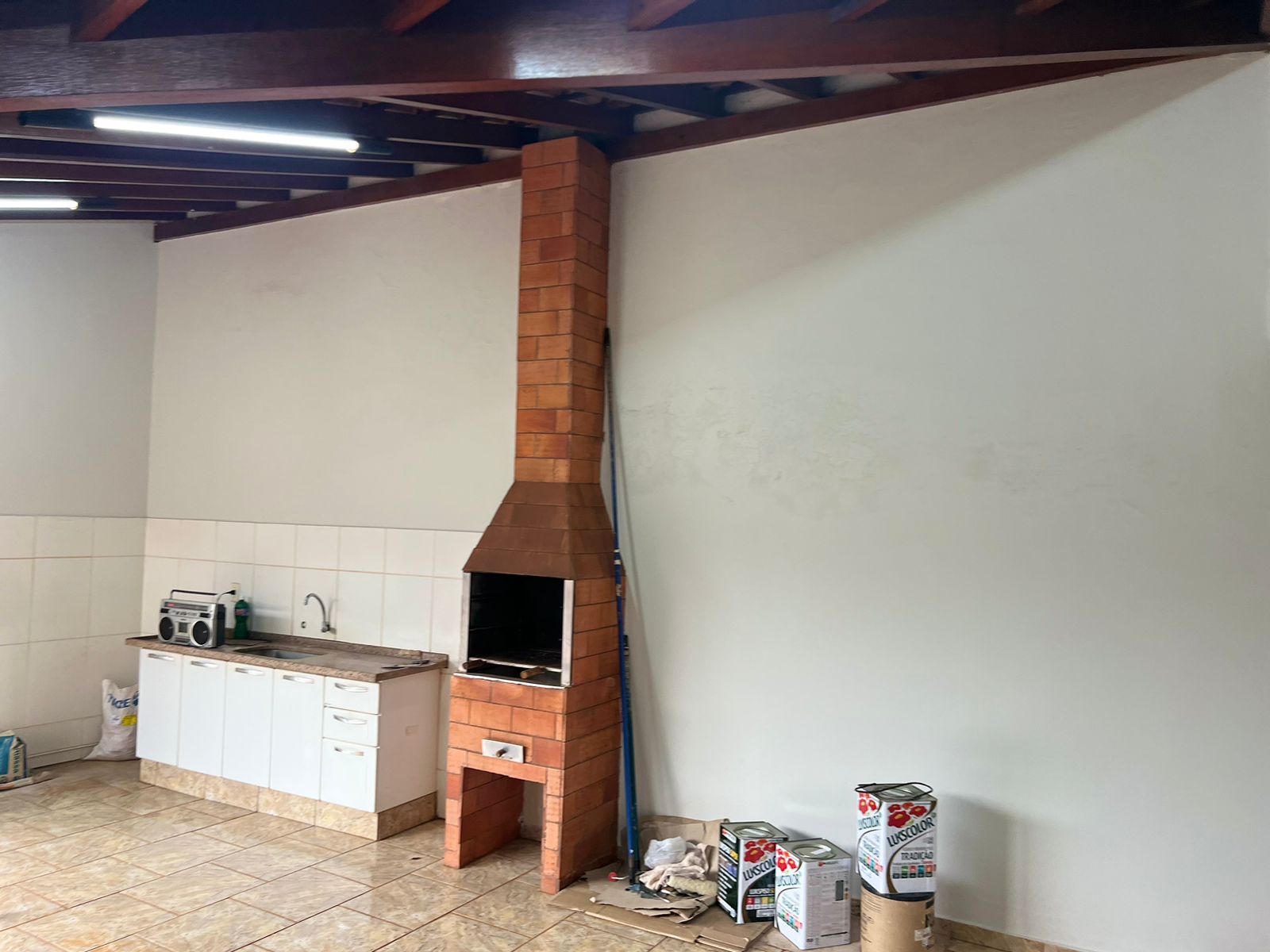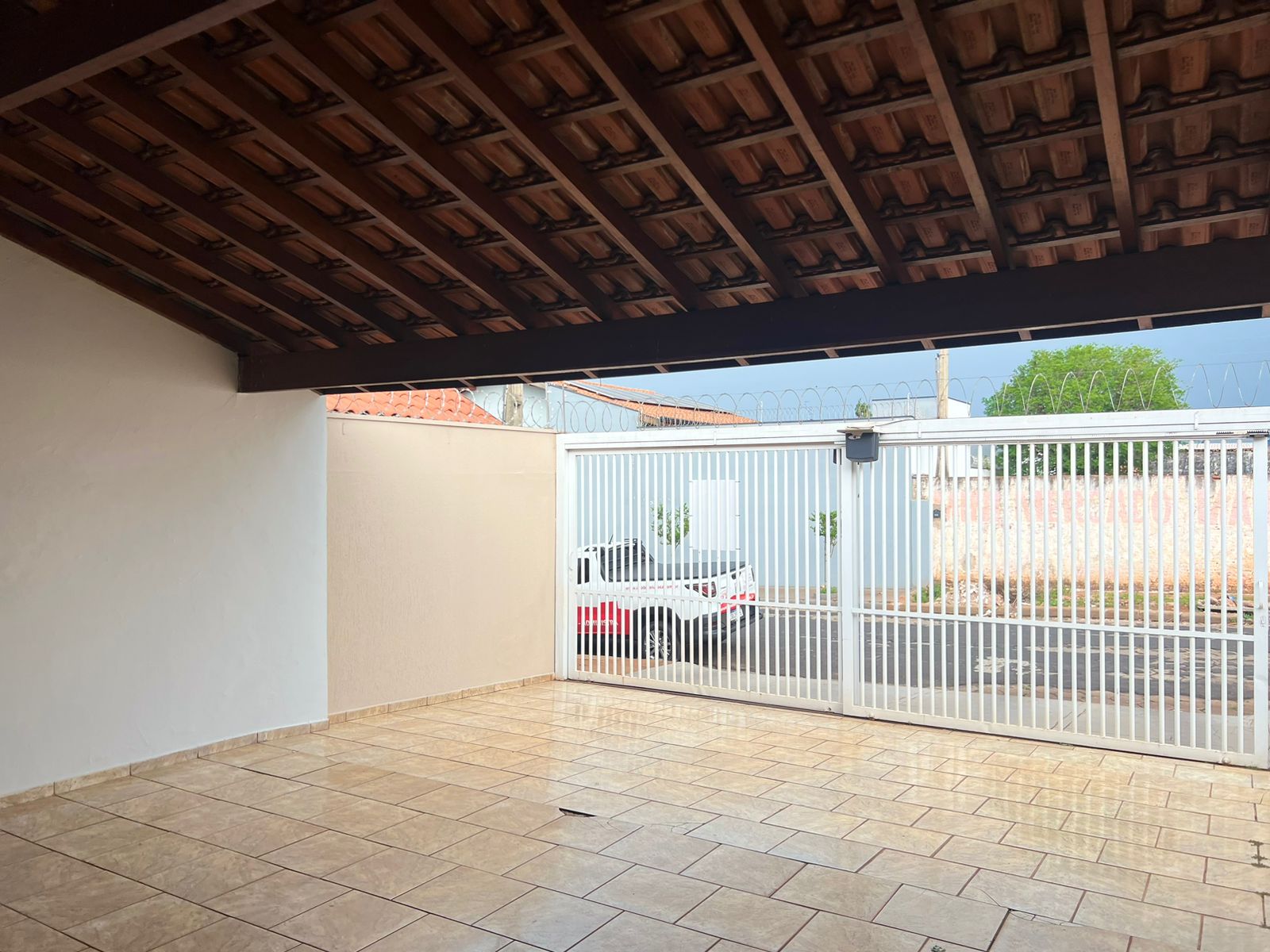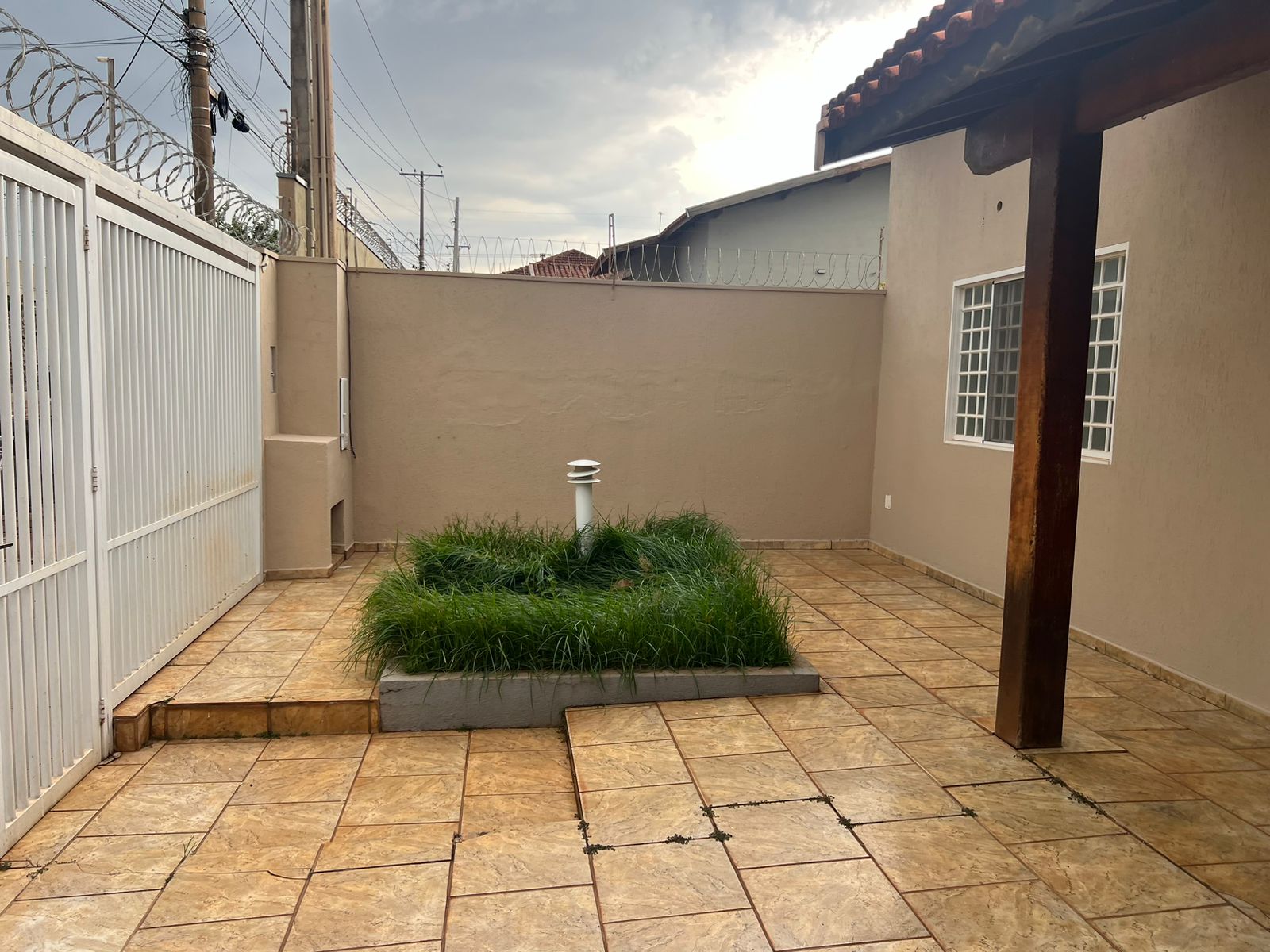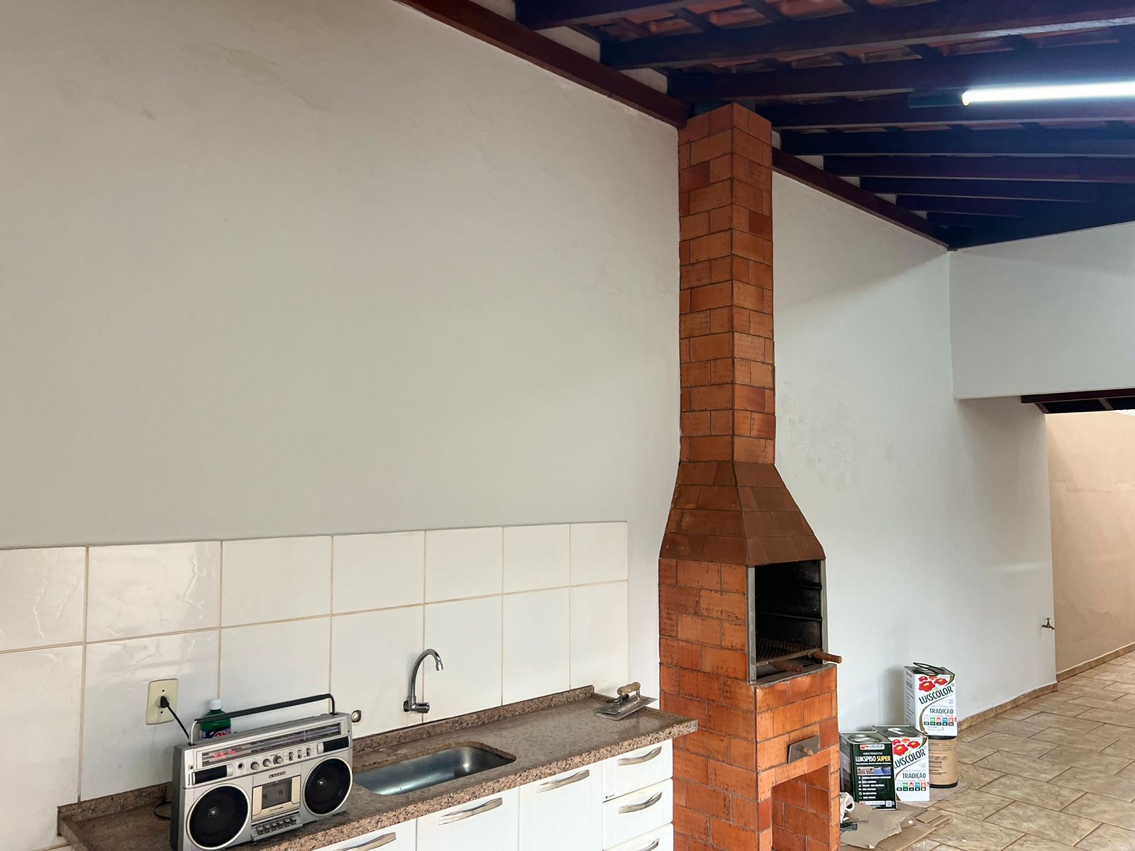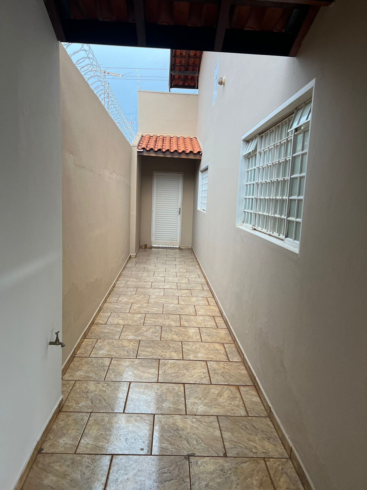 Casa com 01 suíte, 02 dormitórios, sala de tv, sala de jantar, cozinha, wc social, wc externo, área de serviço, despejo, varanda com churrasqueira, despejo, garagem para 03 carros, pintura látex, quintal calçado, teto laje, piso frio, portas em ferro e madeira, janelas em ferro com grades, murada.
